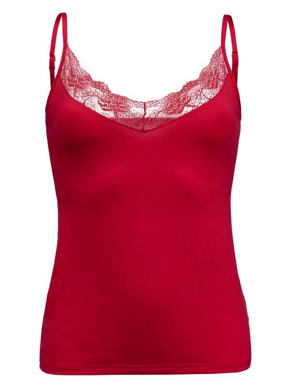 Dieses Spaghetti-Top verfügt über zarte Spitzendetails und bietet einen Hauch von sinnlicher Eleganz. Es kombiniert hochwertige Spitze mit einem angenehmen Baumwolle/Micromodal-Gewebe.