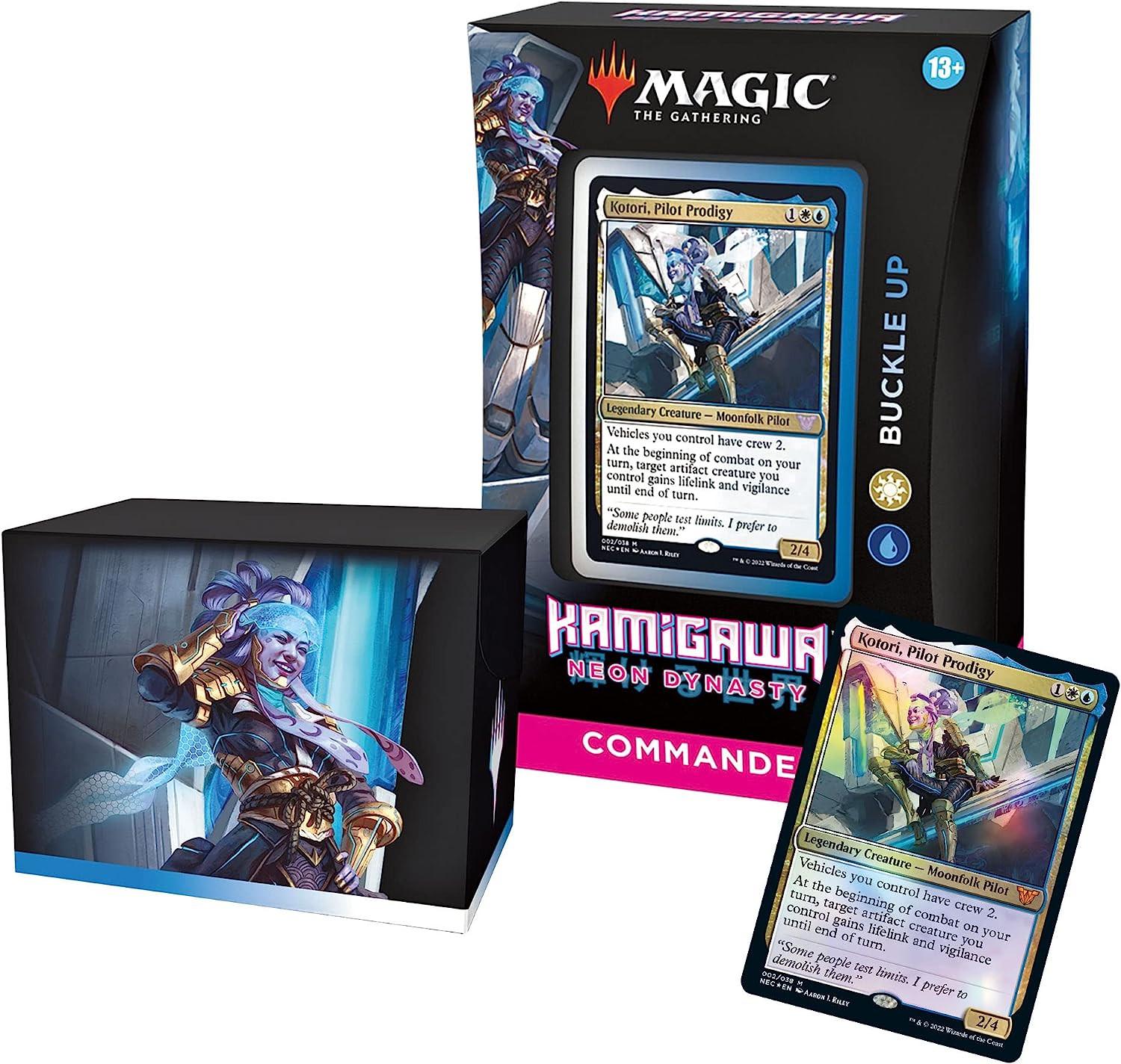 Das Upgrades Unleashed Kamigawa: Neon Dynasty Commander Deck Set beinhaltet 1 spielfertiges Deck mit 100 Magic Karten (2 traditionelle Folie, 98 Nonfoil), 1 foliengeätzter Display Commander (eine dicke Kartonkopie der Commander-Karte mit strukturierter Folie in den Rand und Kunst der Karte), 10 doppelseitige Spielsteine, 1 Deckbox (kann halten 100 Karten), 1 Life-Tracker und 1 Referenzkarte. (Hinweis: Das Deck des Upgrades Unleashed Commander wurde versehentlich mit zwei Kopien von Mossfire Valley anstelle eines zusätzlichen Grundlandes gedruckt. Spieler, die das Deck in Commander spielen möchten, sollten die zusätzliche Kopie von Mossfire Valley gegen ein Grundland oder das Land ihrer Wahl austauschen. )
