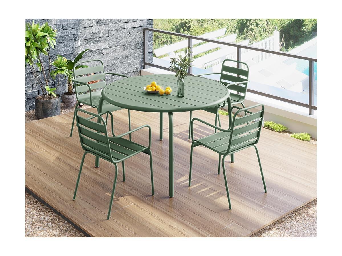 Vente-unique, Garten-Essgruppe: Tisch D. 110 cm + 4 stapelbare Sessel - Metall - Grün - MIRMANDE von MYLIA