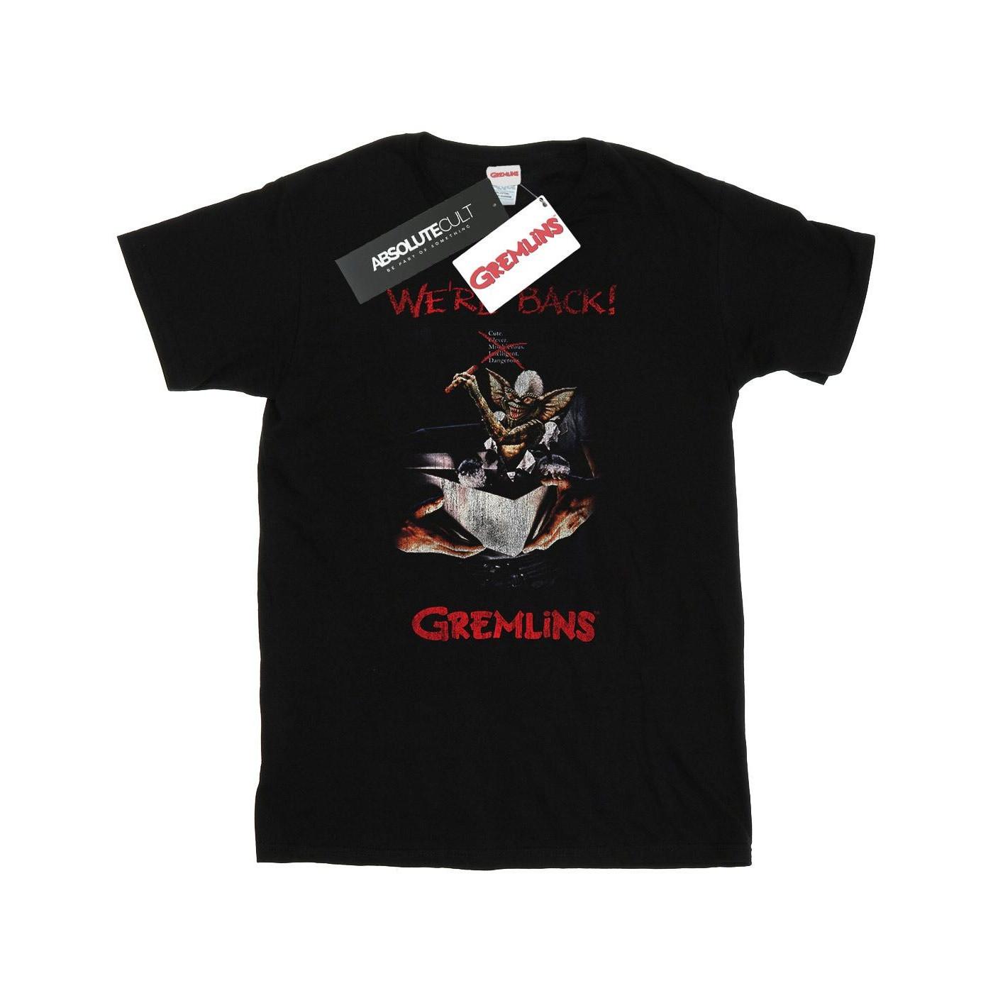 Dieses T-Shirt verfügt über einen klassischen Rundhalsausschnitt und kurze Ärmel und bietet eine bequeme und vielseitige Passform. Die Vorderseite des Shirts zeigt einen auffälligen Grafikdruck, inspiriert vom ikonischen Film "Gremlins", mit dem prominent angezeigten Satz "We're Back!".