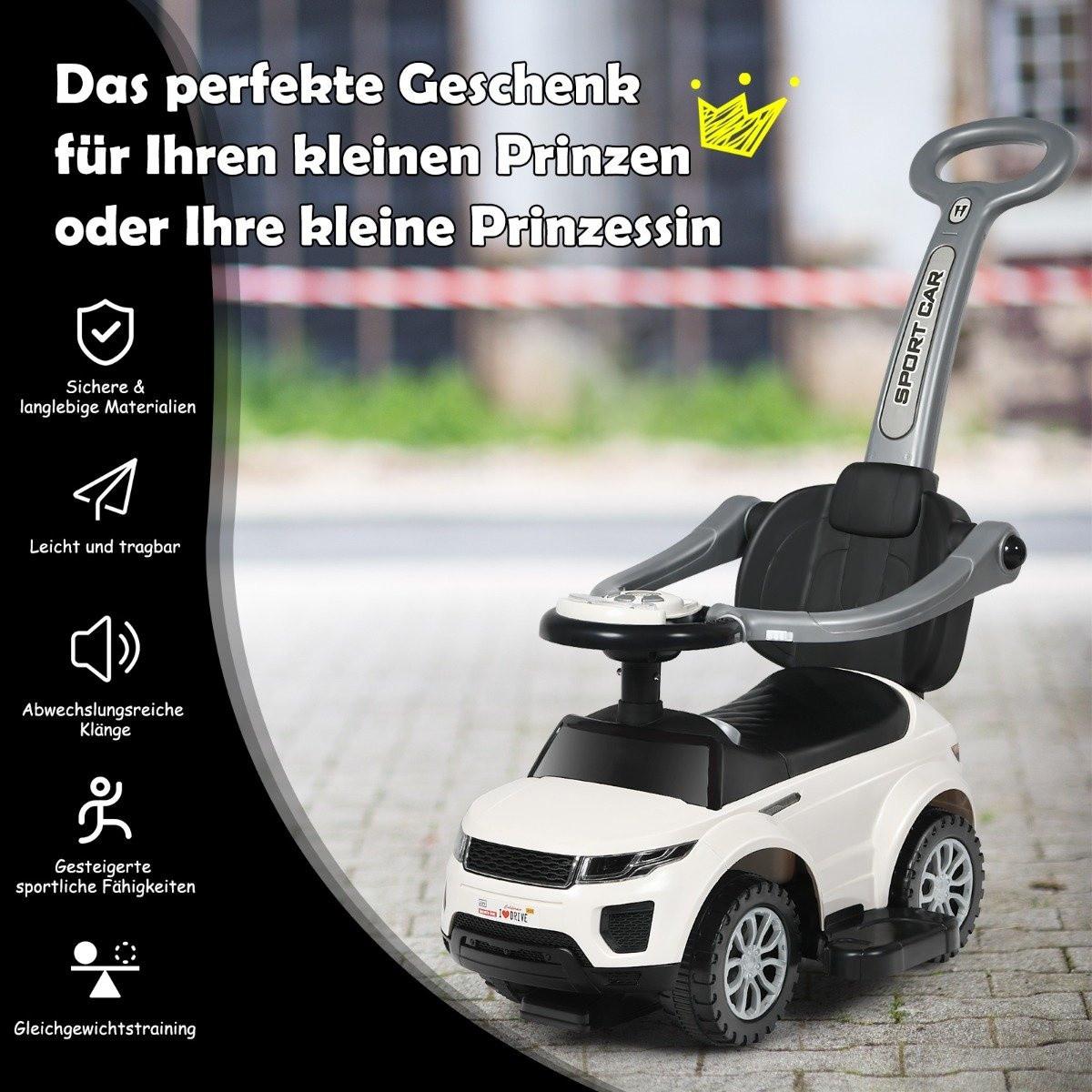 Northix  3 in 1 Rutschauto Schiebeauto Rutschfahrzeug mit Abnehmbarem Schiebgriff & Schutzbügel Weiß
