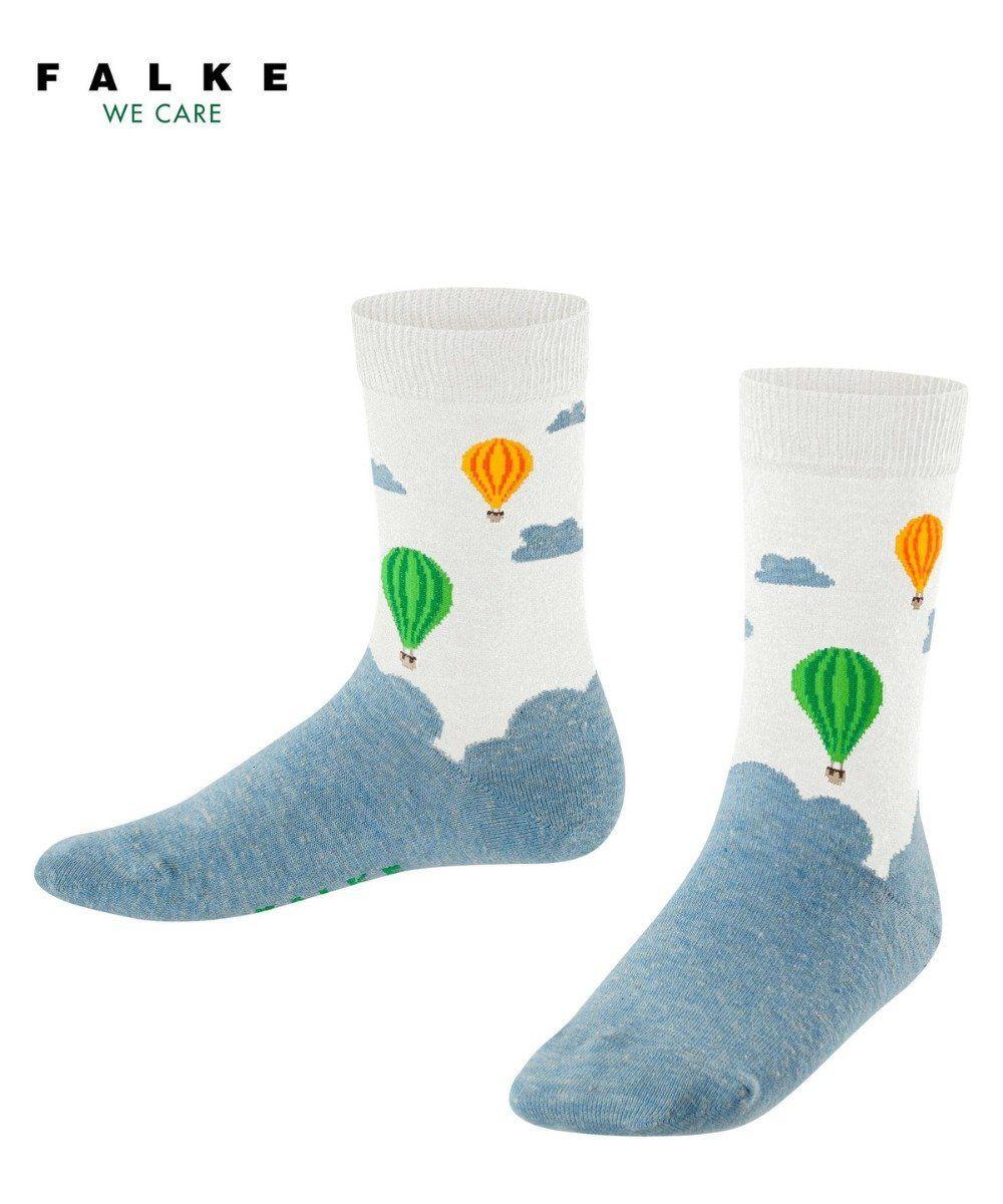 Die Skylife Socken zeichnen sich durch ein einzigartiges Design aus, mit Heissluftballons und bunten Wolken in Orange, Gelb, Grün und Blau, die sich auf einem weissen Hintergrund abheben. Der Boden der Socken ist hellblau und erinnert an den Fussbereich. Diese Socken eignen sich dank ihres klassischen und eleganten Stils perfekt für alltägliche Anlässe, aber auch für Abende oder Empfänge.