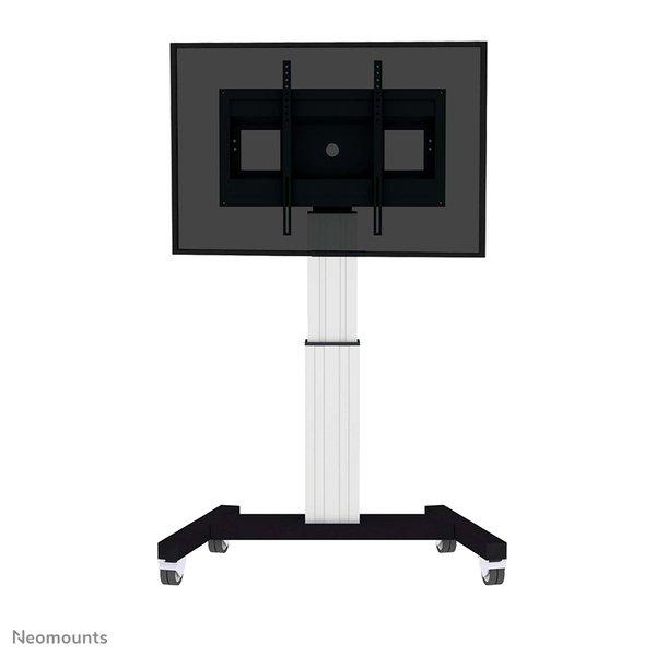 Das Neomounts by Newstar Modell PLASMA-M2500SILVER ist ein mobiler Bodenständer mit elektrischer Höhenverstellung für Displays und TVs von 42"-100"(107-254 cm). Mit dem Neomounts by Newstar PLASMA-M2500SILVER mit elektrischer Höhenverstellung können Sie ein Grossformatdisplay oder TV auf dem Boden aufstellen und auf jede Situation einstellen. Positionieren Sie Ihr Gerät im Handumdrehen für das stehende oder sitzende Publikum und für jede Anwendung überall in Ihrem Gebäude. Ideal für Touch-Screen Applikationen und den Einsatz im Klassenzimmer, Meetingraum, Präsentationsraum oder im Eingangsbereich. Der PLASMA-M2500SILVER eignet sich für Bildschirme von 42"-100" und hat eine Tragfähigkeit von 150 kg. Der Rollwagen eignet sich für Bildschirme mit VESA Lochmustern von 200x200, 200x400, 400x400, 400x600 bis 600x800 mm. Hinter dem Bildschirm haben Sie 6 cm Platz um zum Beispiel einen Mediaplayer oder einen Mini-Computer zu installieren. Die Kabel können auf der Rückseite der Halterung geführt werden. Mit seinen hochwertigen Rädern können Sie den Wagen mühelos über Schwellen rollen. Die Höhe des Bildschirms lässt sich bequem um 50 cm mit der Fernbedienung verstellen. Vom Boden bis zum Zentrum ist der Abstand des Bildschirms von 111 cm bis 161 cm verstellbar. Der Trolley ist mit vier massiven Lenkrollen ausgestattet, von denen die beiden vorderen Rollen mit einer Bremse ausgestattet sind. Der Neomounts by Newstar PLASMA-M2500SILVER kommt in Weissaluminium RAL 9006 und bietet eine sehr flexible Alternative zur Wand-, Decken- oder Tischmontage. Befestigungsmaterial im Lieferumfang enthalten. Einfache Montage. 5 Jahre Garantie.