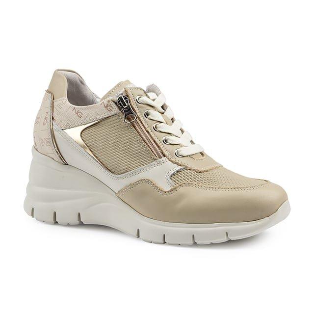 Die Low Sneakers Agosta von Nero Giardini bieten einen einzigartigen und eleganten Stil für Ausflüge und Freizeit. Entworfen für den Alltag sind diese Schuhe perfekt für Frauen, die bequem bleiben möchten, während sie modisch sind. Das Obermaterial aus Leder und das Innenfutter aus Leder bieten ein luxuriöses Tragegefühl, während die abnehmbare Ledersohle eine individuelle Passform garantiert. Die 60 mm Keilabsätze verleihen diesen Schuhen einen Hauch von Raffinesse. Die Details des Schuhs, wie der Leder Sneaker mit Reißverschluss und der Keilabsatz, zeigen die Qualität der verwendeten Materialien und den einzigartigen Stil Made in Italy der Marke. Die Low Sneakers Agosta sind in beige erhältlich, einer neutralen und eleganten Farbe, die zu allen Anlässen passt.