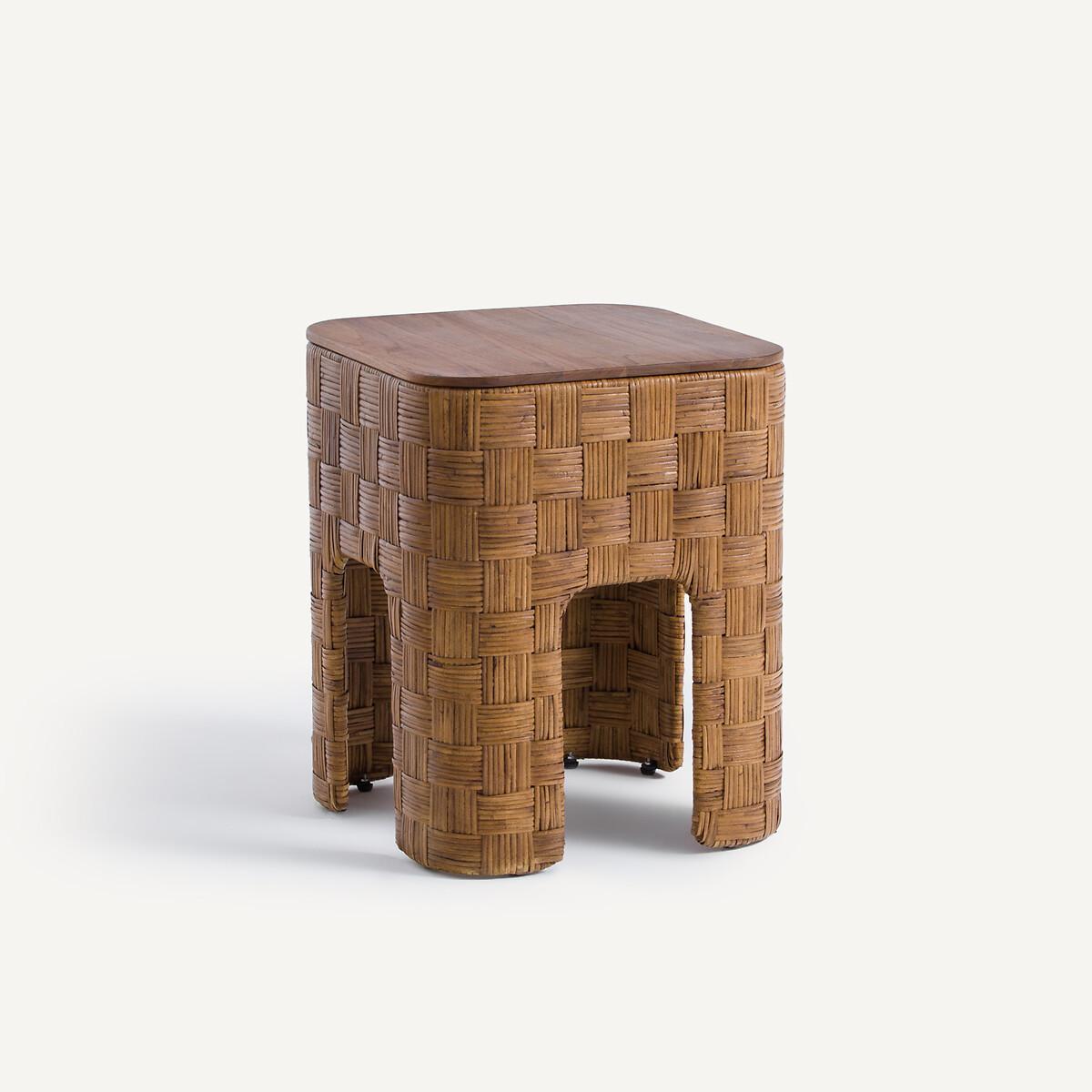 AM.PM, Nachttisch aus massivem Teakholz und Rattangeflecht