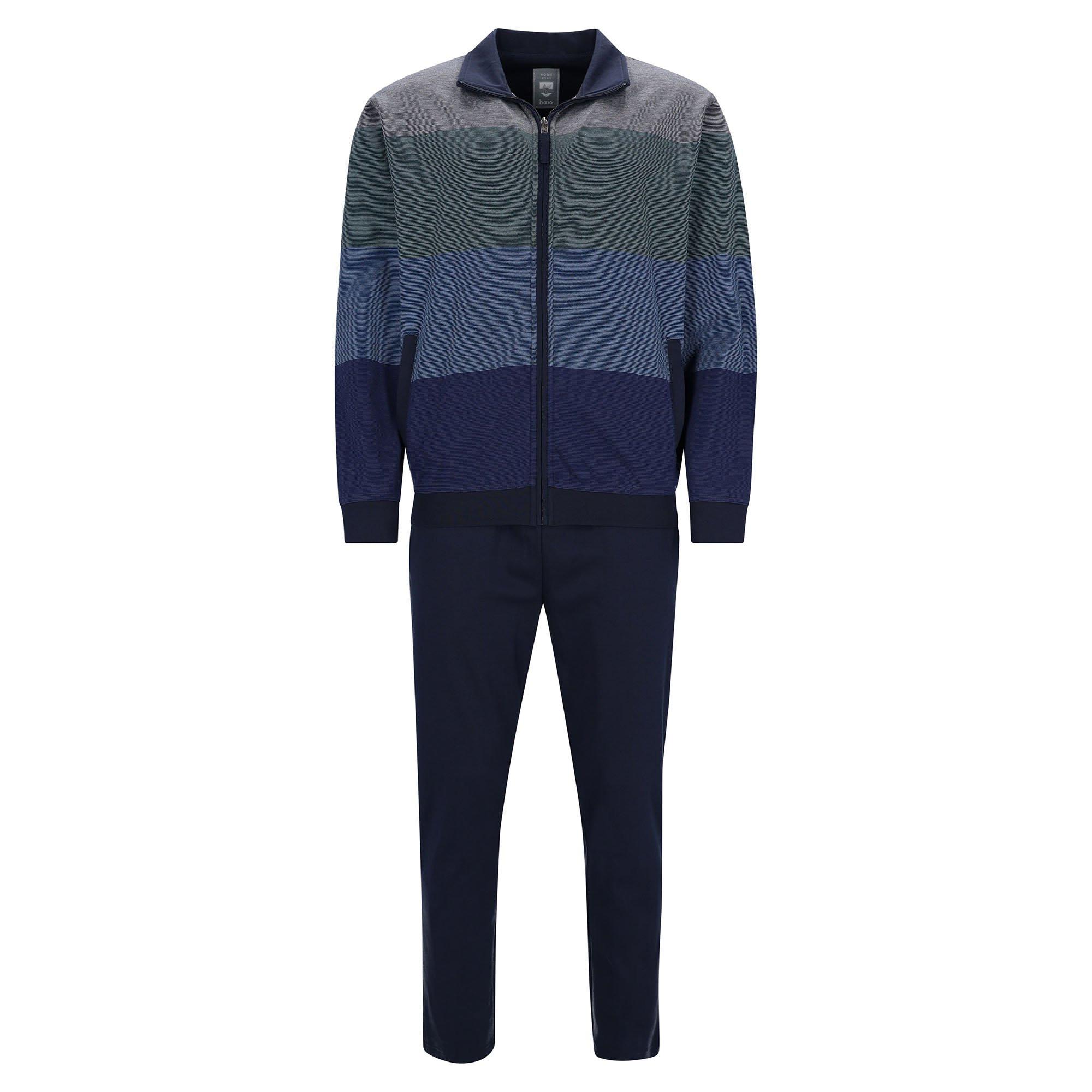 Sportilicher Homewear-Anzug für Herren von der Marke hajo. Zipper-Jacke und lange Hose. Bügelfrei, atmungsaktiv, hautsympathisch.
