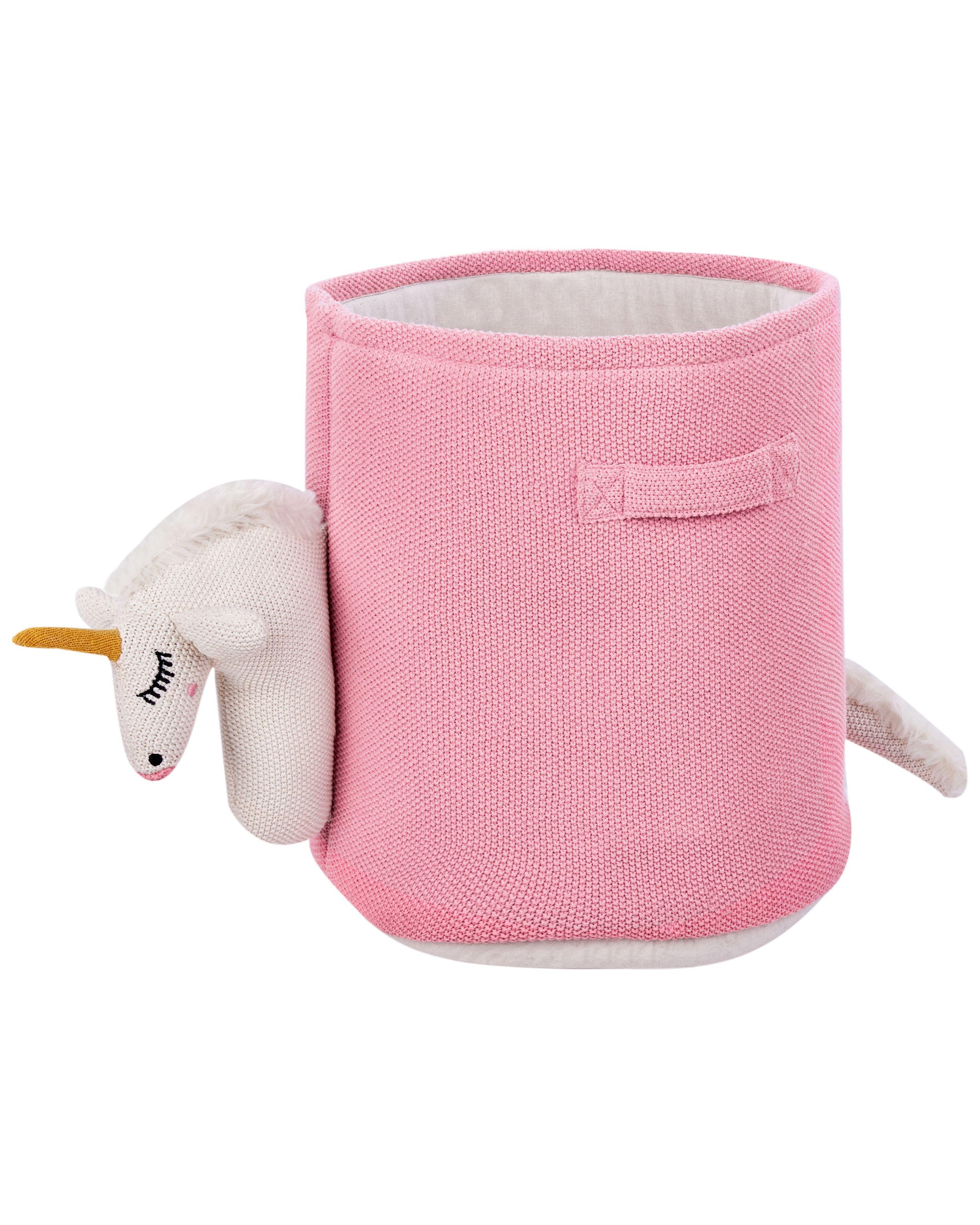 Gestricktes Spielzeugkörbchen. Verleihen Sie dem Kinderzimmer mit diesem Aufbewahrungskorb in Einhornform einen Hauch von Magie. Er ist aus weicher Baumwolle gefertigt und bietet eine lustige und praktische Aufbewahrungsmöglichkeit für Spielzeug, Bücher und andere Dinge. Trotz seiner kompakten Grösse verleiht das charmante Design jedem Raum eine verspielte Note. Perfekt, um Ordnung zu schaffen, passt dieser niedliche Korb mühelos zu verschiedenen Einrichtungsstilen und wird so zu einer zauberhaften Ergänzung im Reich Ihres Kindes.