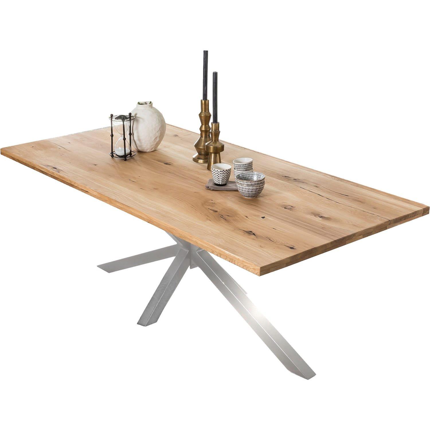 mutoni Massivholztisch 200x100 - Wildeiche geölt natur - Metall antiksilber