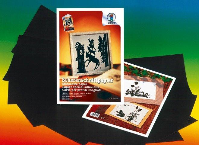 Scherenschnitt-Papier Gestalten Sie spannende Silhouetten mit dem zweiseitig gefärbten Scherenschnitt-Papier. Papier tiefschwarz, lichtecht