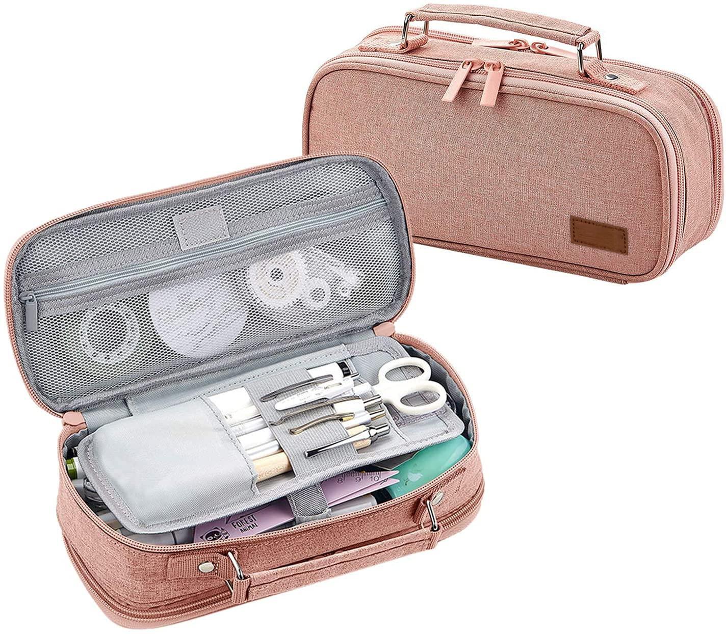 Material: Hergestellt aus hochwertigem Canvas. Robuster 2-Wege-Reißverschluss für schnelles Öffnen und Schließen. Der reißfeste und strapazierfähige Tragegriff ist für den sicheren Transport bei voller Beladung geeignet. Größe: B/T/H: ca. 24/7/11,5 cm. Das Federmäppchen hat zwei geräumige Hauptfächer mit rundem Reißverschluss und zusätzliche Fächer. Ideal für Büroutensilien wie Stifte, Lineal, Radiergummi, Dreieck, Radiergummi, Anspitzer und Büroklammern etc. Praktisches Design: Reißverschlussfach im Deckel für alles, was nicht gleich jeder entdecken soll. Stifte, Tintenpatronen und andere Schulutensilien können in den praktischen Schlaufen und Fächern verstaut werden. Für das Set-Quadrat gibt es ein extra Fach, damit es nicht herumfliegen kann. Übersichtliche Aufbewahrung: Alle Utensilien sind dank des integrierten Ordnungssystems schnell zur Hand. Dank seiner kompakten ovalen Form passt das Mäppchen in jeden Rucksack. * Vielseitig einsetzbar: Geschenkideen. Ideal als Kulturbeutel, Kosmetiktasche, Federmäppchen, Schminktasche oder Münzetui für Uni, Büro und Schule.
