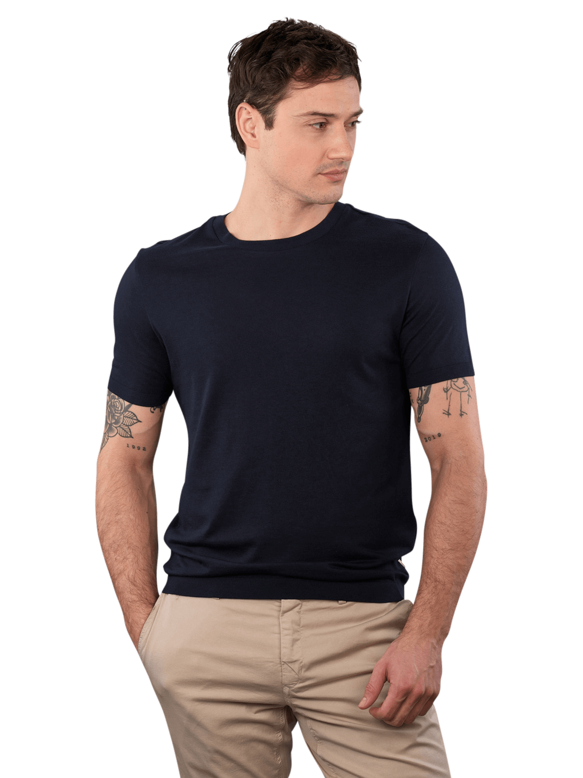 Das Strick-T-Shirt Trevor ist ein hochwertiges Basic für einen stilvollen Look. Die feine Strickqualität sorgt für ein angenehmes Tragegefühl und macht das Shirt zu einem vielseitigen Begleiter für den Alltag oder entspannte Freizeitaktivitäten. Der klassische Rundhalsausschnitt und die reguläre Passform schaffen eine zeitlose Silhouette.
