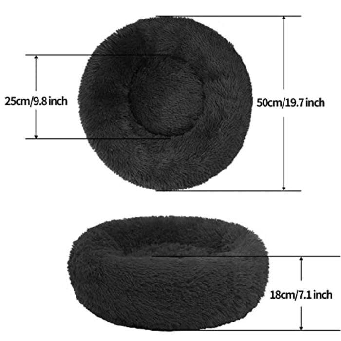 * Weich und warm: Das Material des Katzenbettes ist langes Plüsch, geruchlos und sicher, weich und fein, sehr angenehm zu berühren. Es hat auch eine sehr gute Wärmefunktion, um sicherzustellen, dass Ihr Haustier im Winter nie kalt fühlt. * Bequemer Schlaf: Das flauschige Katzenbett hat ein abgerundetes Design mit erhöhten Rändern für eine gute Unterstützung von Kopf und Nacken. Die Innenpolsterung besteht aus Perlbaumwolle, die sehr elastisch ist und sich dem Körper Ihres Haustieres gut anpasst, was es unglaublich bequem macht. * Rutschfestes Design: Die Unterseite des Haustierbettes hat rutschfeste Partikel, die das Bett ruhig halten können, wenn Ihr Haustier herausspringt oder umkippt, und verhindern, dass Ihr Haustier wegrollt und sich erschreckt. * Moderate Größe: 50 cm Durchmesser, geeignet für Kätzchen und Welpen. Empfohlen für Haustiere, die nicht mehr als 13 Pfund wiegen. Das Katzenbett ist maschinenwaschbar, werfen Sie das Bett in die Waschmaschine, trocknen Sie es und dann können Sie es weiter benutzen. Außerdem ist dieses gemütliche, beruhigende Katzenbett sehr tragbar, so dass Sie es und Ihr Haustier mitnehmen können, wenn Sie campen oder reisen, um Ihrem Haustier besser Gesellschaft zu leisten.