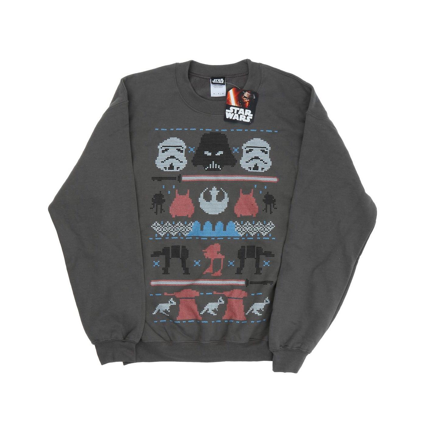 Dieses Sweatshirt verfügt über eine einzigartige Grafik, die vom ikonischen Star Wars Universum inspiriert ist. Das Design zeigt verschiedene Elemente der Dunklen Seite und macht es zu einem unverwechselbaren Stück für Fans.