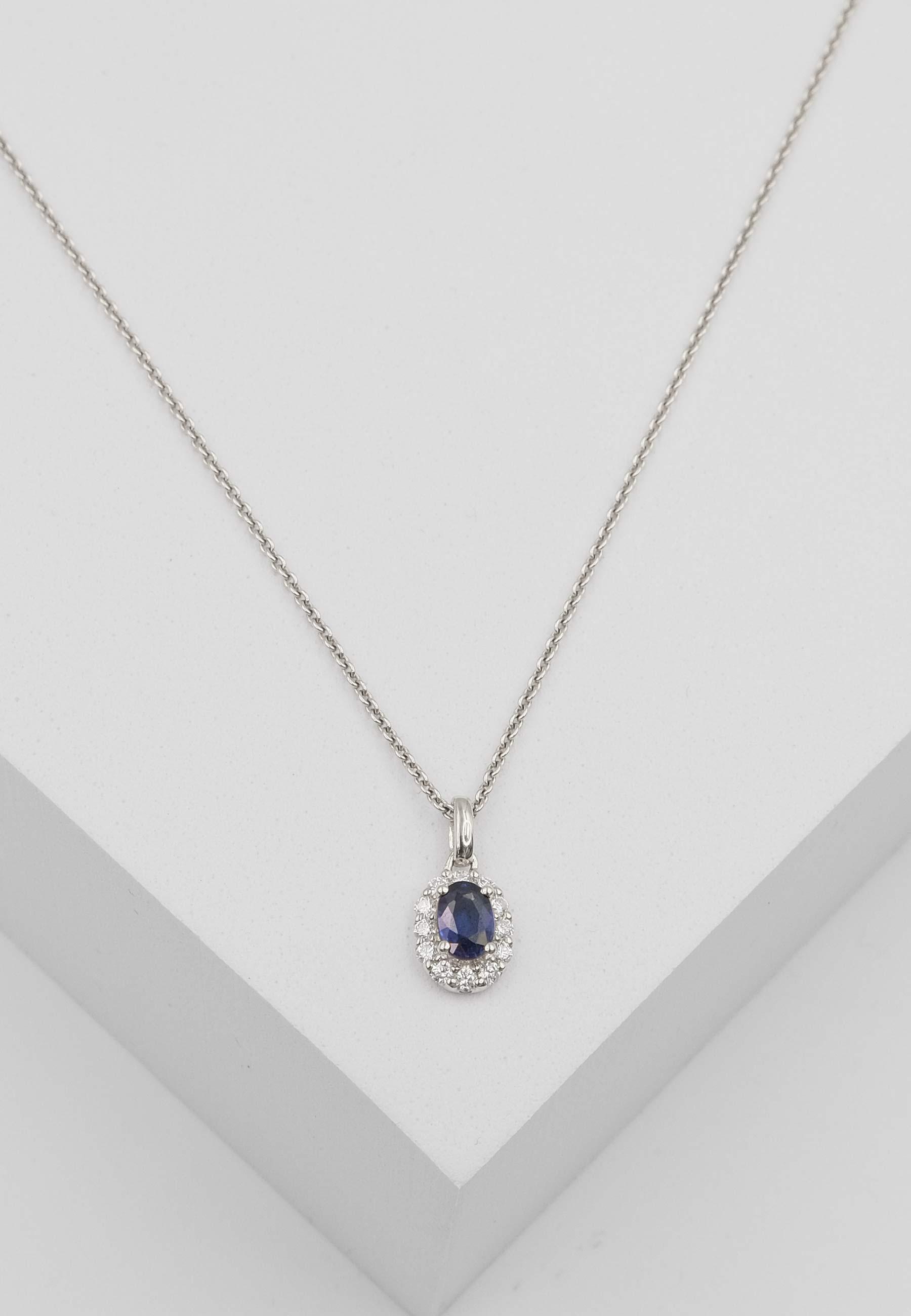MUAU Schmuck, Anhänger Weissgold 750 Saphir 0.64ct. Brillanten 0.22ct. 16x8mm
