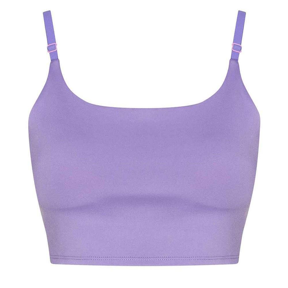 Dieser Sport-BH wird aus recyceltem Material hergestellt und bietet eine bequeme und stützende Passform für verschiedene Aktivitäten. Das Design sorgt für eine glatte Silhouette und Bewegungsfreiheit.