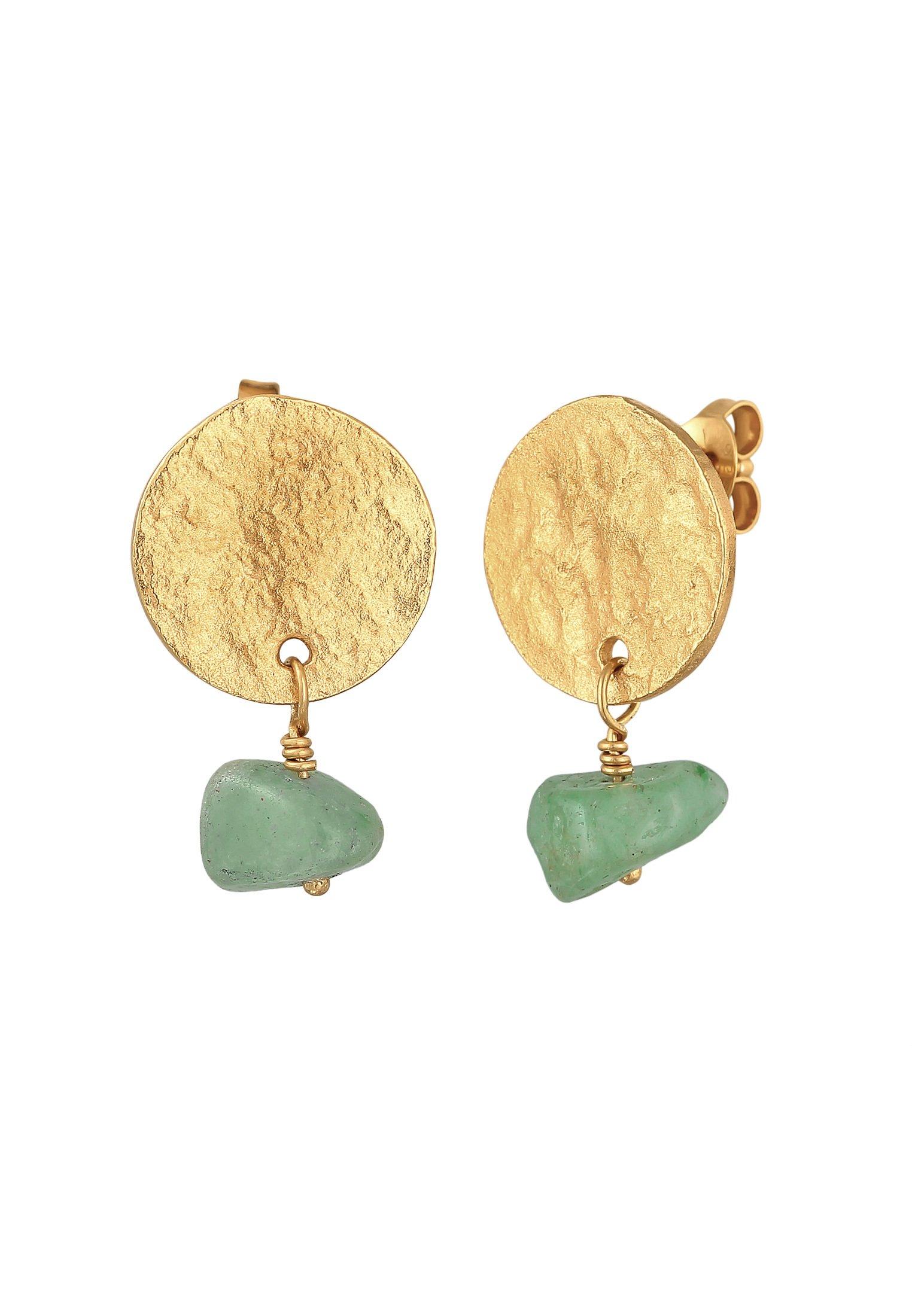 Diese modischen Plättchen Damen Ohrringe, aus feinstem vergoldeten 925 Sterling Silber handgefertigt, präsentieren sich im besonderen Organic-Finish. Das schlichte und moderne Design der runden Münze ist perfekt zum eleganten Look. Der Aventurin Splitter kombiniert mit den strukturierten Plättchen strahlt im sagenhaften Vintage-Charme. Dieser Ohrschmuck ist ein Must-have für alle modebewussten Frauen.