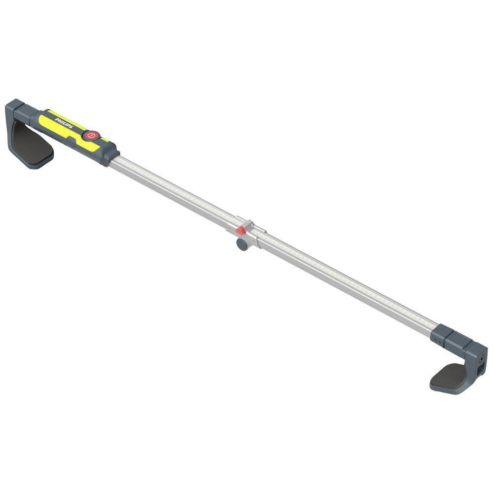 Die Philips Xperion 6100 LED-Motorraumleuchte bietet mit bis zu 2400 Lumen (Netzbetrieb) ein extra helles, aber natürlich weisses LED-Licht mit 6500 Kelvin, das zudem stufenlos dimmbar ist. Die Hybridfunktion erlaubt sowohl dauerhaftes Arbeiten im Netzbetrieb als auch flexibles, kabelloses Arbeiten im Akkubetrieb. Auch während des Aufladens des Akkus bleibt die Leuchte einsatzfähig. Der 110° breite Abstrahlwinkel, die zwei auf bis zu 2,1 m ausziehbaren und 360° drehbaren Teleskophaken und ein mittig faltbares Lichtmodul, machen sie zu einem leistungsstarken und flexibel einsetzbaren Begleiter. Ideal für Arbeiten an Autos, Transportern und Lastwagen, aber auch für Heimanwender als vielseitige Garagen- oder Kellerleuchte.