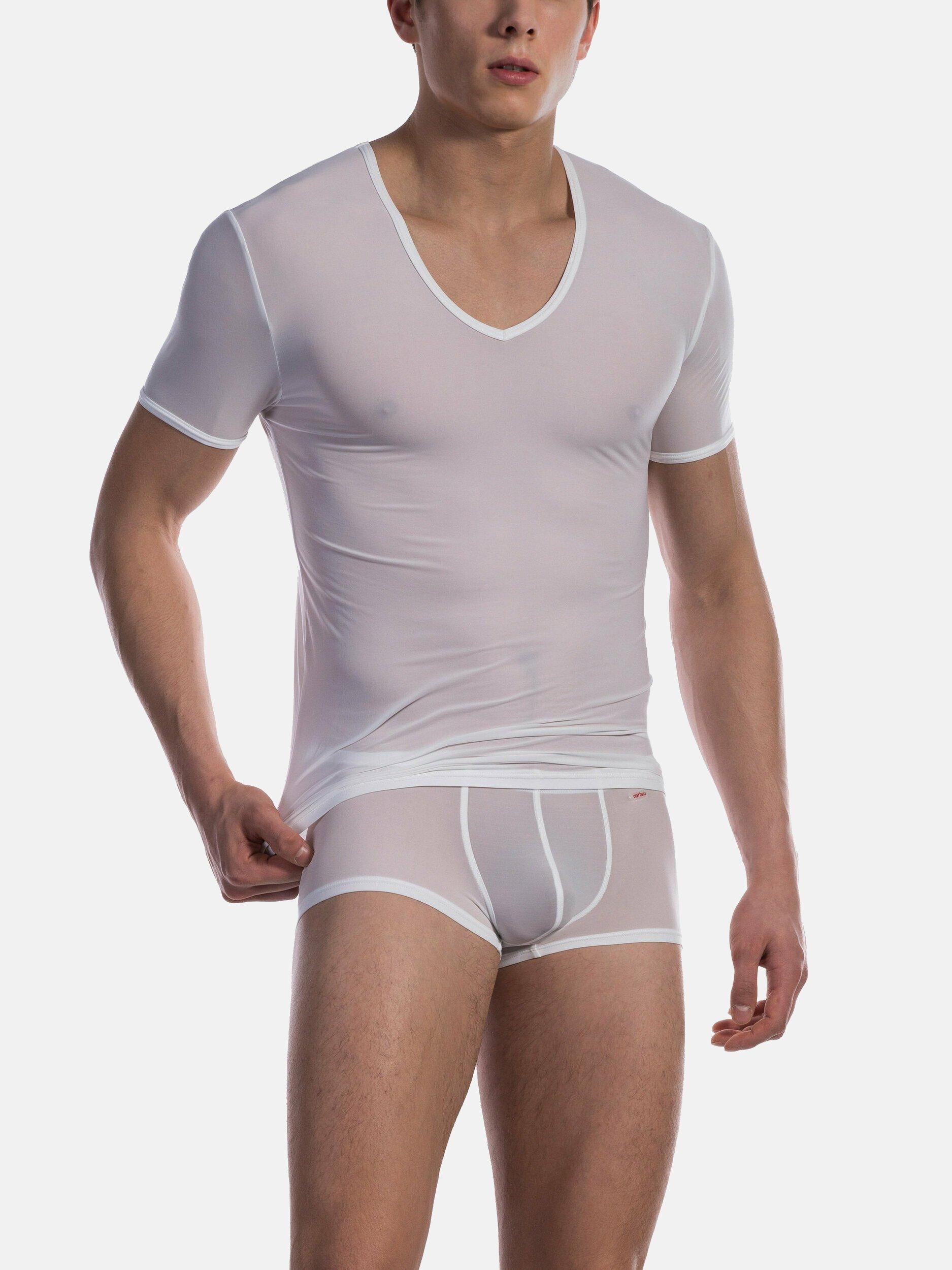 Dieses RED0965 V-Ausschnitt T-Shirt ist aus einem ultraleichten und extrem elastischen Mikrofasergewebe gefertigt, das sich weich und besonders sensibel anfühlt. Es verfügt über einen weiten V-Ausschnitt und kurze Ärmel.