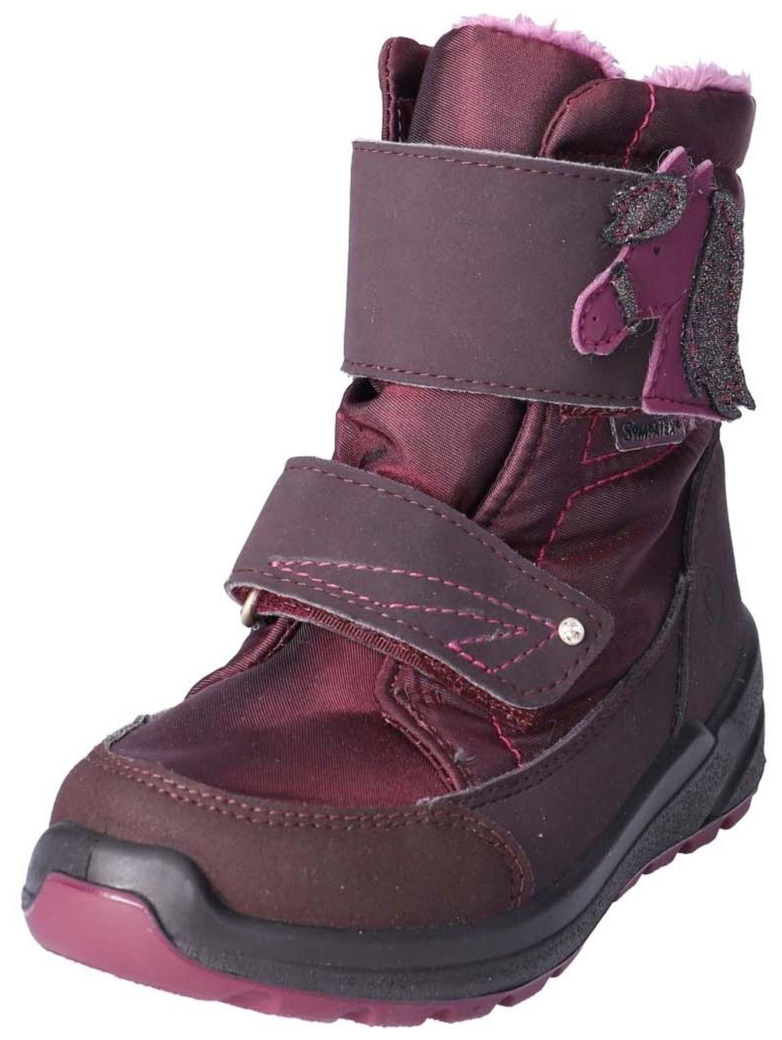 Stiefelette von Ricosta mit Warmfutter für super warme Füße. Die beiden Klettverschlüsse lassen sich individuell an den Fuß anpassen. Der breite Klettverschluss wird dabei mit einem Pferdemotiv toll aufgehübscht. Dank der atmungsaktiven und zugleich wasserdichten SympaTex® Membran bleiben die Füße angenehm trocken und warm. Das Nonplusultra ist das waschbare Material. Obermaterial: Lederimitat/Textil Innenmaterial: Textil Decksohle: Textil Laufsohle: Gummi
