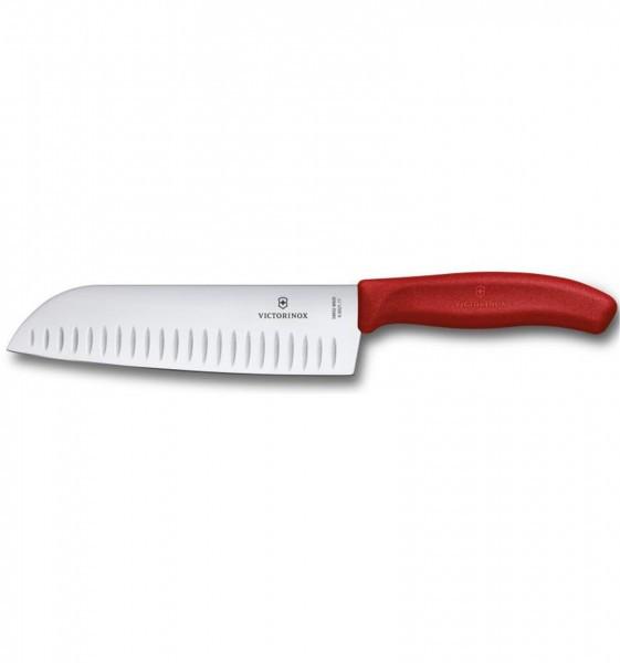Victorinox Santokumesser Swiss Classic Rot/Silber, Typ: Santokumesser, Klingenform: Kullenschliff, Inklusive Messerblock: Nein, Set: Nein, Material: Elastomer (TPR), Farbe: Rot, Silber.