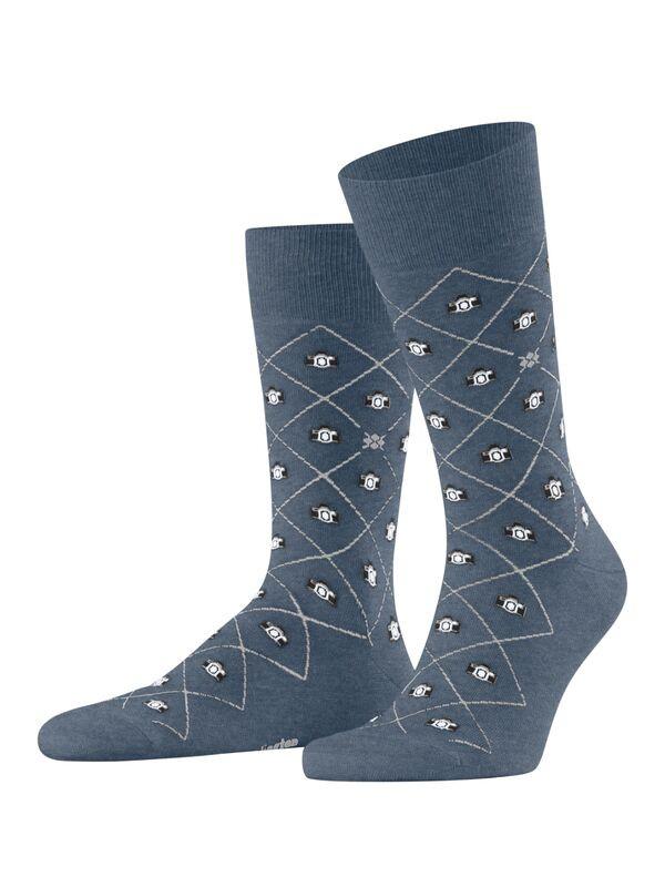 Diese Socken verfügen über ein verspieltes Kamera-Muster, das jedem Outfit eine einzigartige Note verleiht. Das Design ist in ein klassisches Argyle-Muster integriert und bietet eine Mischung aus traditionellem und zeitgenössischem Stil. Der Burlington-Schriftzug ist auf der Sohle angebracht.