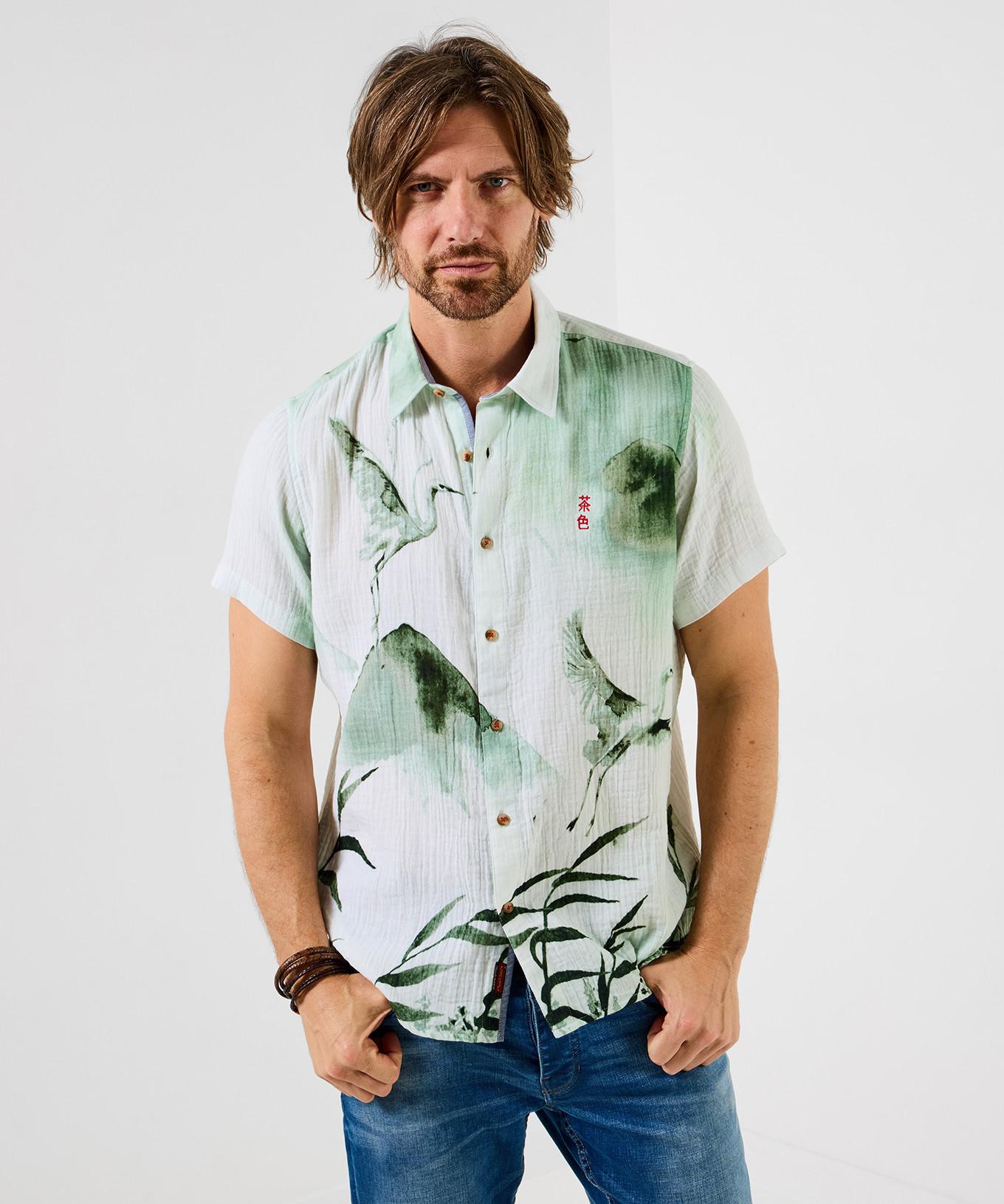 Joe Browns, Kurzarmhemd aus Crinkle-Stoff mit Kranichmotiv