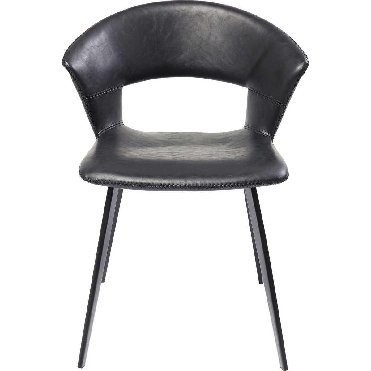 Schwarz von der Lehne bis zu den Beinen, dazu die fein geschwungene Linienführung das macht diesen Stuhl so begehrenswert. Weil er elegant wirkt, aber nicht zu vornehm, weil er anpassungsfähig ist, aber nicht langweilig. Ergänzt werden muss unbedingt noch wie bequem er ist. Denn Sitz und Lehne sind fein gepolstert und haben einen Bezug in Leder-Optik. Der perfekte Stuhl für gemütliche Wohnküchen. Auch als Barhocker erhältlich.Bequem gepolsterter Stuhl in schwungvollem Retrodesign ganz in SchwarzEin besonderer Blickfang: die Aussparung an der Lehne und die umlaufende, attraktive KreuzstichnahtKeine Ecken und Kanten und damit besonders komfortabel, ob am Esstisch oder zum Schreibtisch im HomeofficeDer beschichtete Bezug wirkt wie Leder, ist aber viel unkomplizierter und besonders pflegeleicht. Feucht abwischen reichtGanz in Schwarz und damit elegant, aber auch easy zu kombinieren. Auch als Barhocker erhältlichProduktinformation Bezug: Textil polyurethanbeschichtet, Polsterung: 24 kg/m_ Polyurethan, Sitz: Furnierschichtholz naturbelassen, Fuss/Füsse: Stahl pulverbeschichtet, 130 kg max. Belastbarkeit, Lieferung zerlegt, 46 cm Sitzhöhe