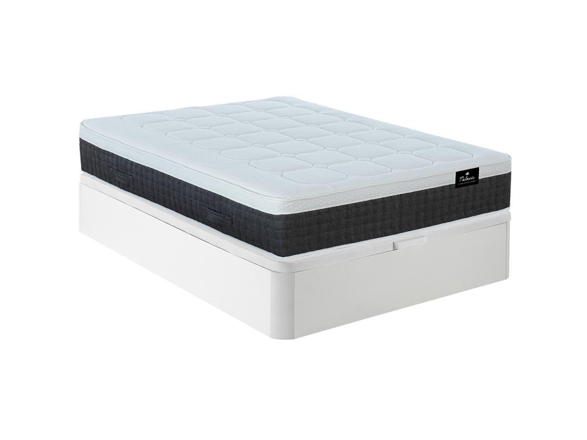 Vente-unique, Set aus Bettgestell + 7-Zonen-Taschenfederkernmatratze - 160 x 200 cm - mit Auflage aus Memory Schaum & Latex - Stärke 30 cm - Weiß - ARTIO von PALACIO