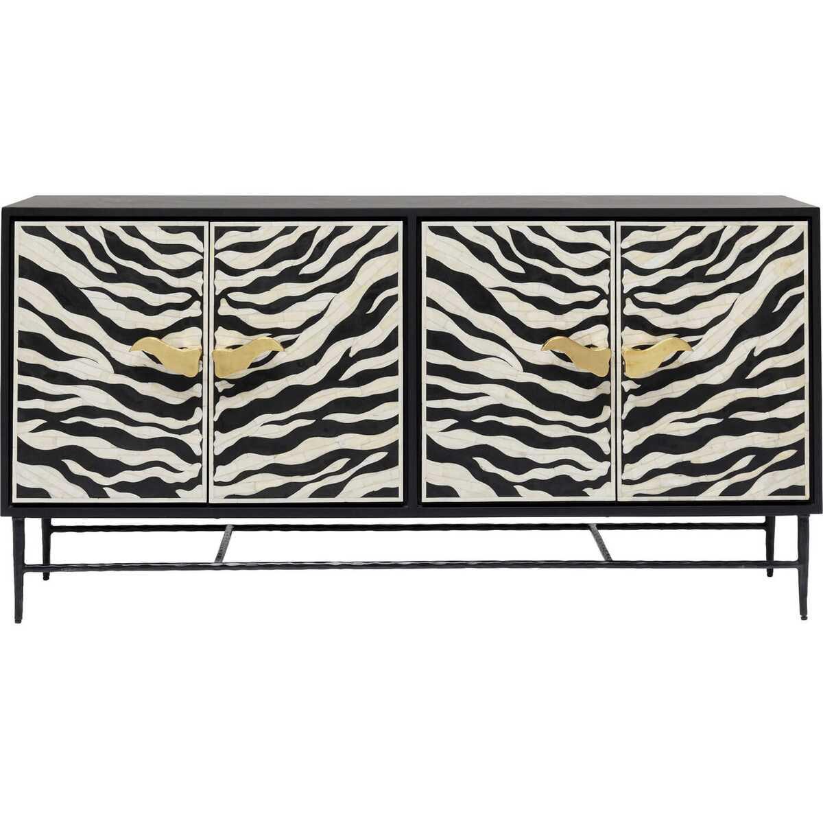 Dieser edle Wohnzimmer-Schrank im Zebra-Look mit goldfarbenen Griffen fällt nicht nur in schlichten, sondern selbst in extravaganten Interiors auf. Die Türfronten sind mit Intarsienarbeiten in Schwarz und Weiss gearbeitet. Da es sich durch die Fertigung von Hand und der Verwendung von Naturmaterialien um Unikate handelt, können Abweichungen von der Abbildung möglich sein.Produktinformation Gestell: Stahl pulverbeschichtet, Korpus: Eukalyptus mitteldichte Faserplatte lackiert, Front: Resin (schwarz), Büffelknochen (weiss) (Tier: Bubalus Bubalis), Fachboden: Eukalyptus mitteldichte Faserplatte lackiert, Griffe: Stahl messing beschichtet, Eukalyptus mitteldichte Faserplatte lackiert, Front: teilweise Handarbeit, Deckplatte: 25 kg max. Belastbarkeit, Fachboden: 8 kg max. Belastbarkeit, zerlegt, 2 Regalböden (fest montiert), Tür magnetisch schliessend Höhe Fuss/Gestell 21cmHandmade: Die kunstvolle Front in Schwarz und Natur-Weiss ist teilweise handgearbeitet, jedes Stück ein UnikatHingucker: Mit dem Zebra Look und Griffen in Gold - diese Anrichte ist im Wohnzimmer ein Statement des besonderen GeschmacksEsszimmer: Werten Sie Ihren Essbereich mit dieser Anrichte auf. Gläser, Geschirr und Besteck lassen sich darin wunderbar verstauenInspiration: Macht aus Ihrem Schlafzimmer einen Luxusoase und bietet viel Platz für Kleidung, Schmuck und GeheimnisseAmbiente: Ob klassisch, modern oder glamourös, das 160 x 80 cm x 40 cm grosse Sideboard ist ein Conversation Starter
