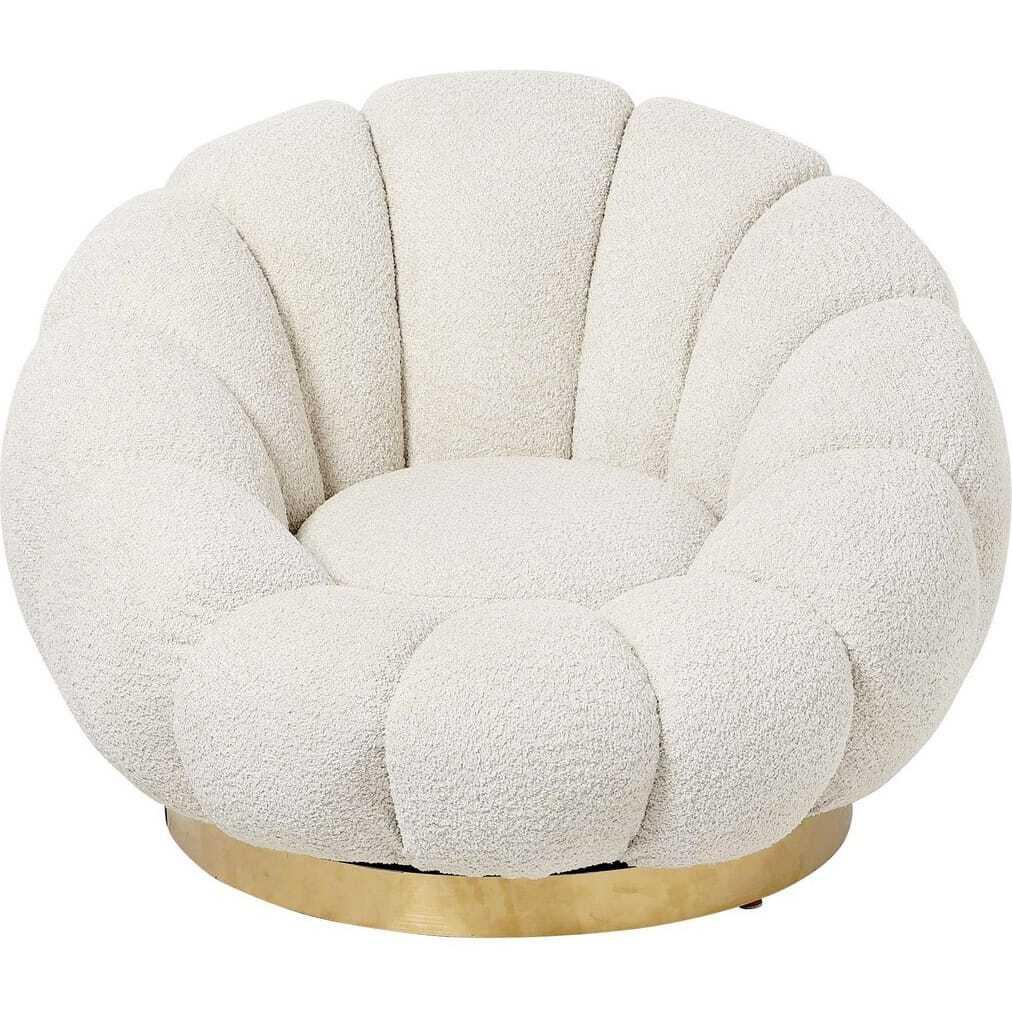 Drehsessel aus Polyester und Holz, Farbe Natur, 86 x 62 x 72hDrehstuhl 360°Bezug aus Polyester In Boucle-OptikPolsterung aus Polyurethanschaum (Sitzdichte 25Kg/m3, 18Kg/m3 Rückenlehne)Boden mit Dekoring aus goldfarbenem StahlGestell aus MDF und Sperrholz