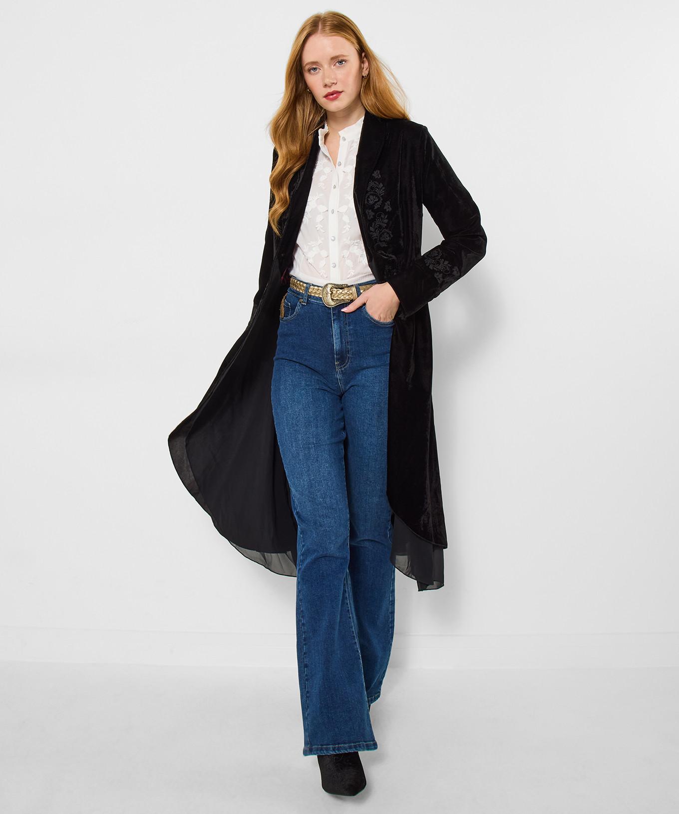 Dieser elegante Samtmantel zeichnet sich durch ein raffiniertes Design aus und ist ein herausragendes Stück für jede Garderobe. Die luxuriöse Textur und die fliessende Silhouette des Mantels schaffen einen edlen Look, perfekt für verschiedene Anlässe.