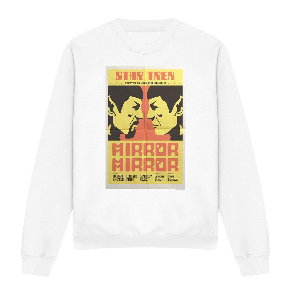 Dieses Sweatshirt zeigt einen Grafikdruck, inspiriert von "Mirror Mirror", Episode 33 von Star Trek: The Original Series. Das Design präsentiert ein geteiltes Bild von Spock, das die ikonischen Themen der Episode widerspiegelt. Dieses bequeme Sweatshirt ist eine grossartige Möglichkeit, die Wertschätzung für klassische Science-Fiction auszudrücken.