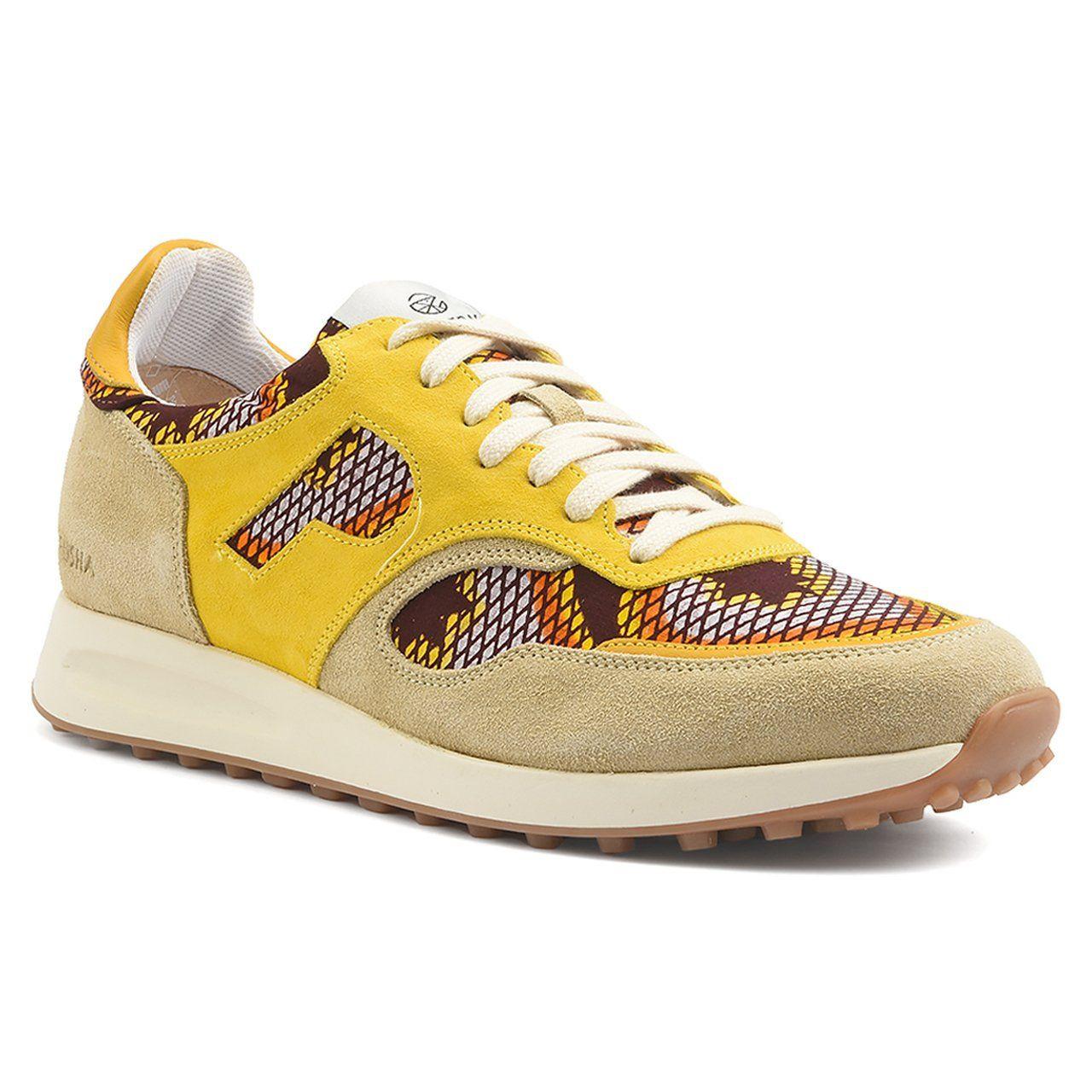 Die Sneakers Arusha sind für Liebhaber von Mode und Komfort konzipiert. Diese trendigen Schuhe sind aus Samtleder und recycelter Baumwolle gefertigt und bieten außergewöhnliche Weichheit und Leichtigkeit. Ihr Oberteil besteht aus gelbem Samtleder und Stoffen, die in Orange, Schwarz, Weiss und Braun bedruckt sind und ein einzigartiges und attraktives, mehrfarbiges Design schaffen. Die Schnürsenkel sind aus weisser Baumwolle und die Zunge hat ein geprägtes Logo. Der Absatz ist auch aus beigem Samtleder. Die Einlegesohlen sind aus Textil und abnehmbar, während die Aussensohlen aus Naturkautschuk sind. Die Arusha sind ideal für Tagesausflüge, Wanderungen oder Freizeitaktivitäten, da sie außergewöhnlichen Komfort und Vielseitigkeit bieten.