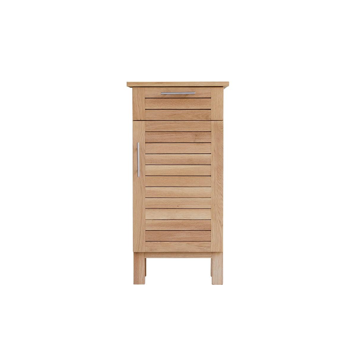 Dieser Schrank mit seinem natürlichen Stil bietet vielfältigen Stauraum für Ihre Badutensilien.