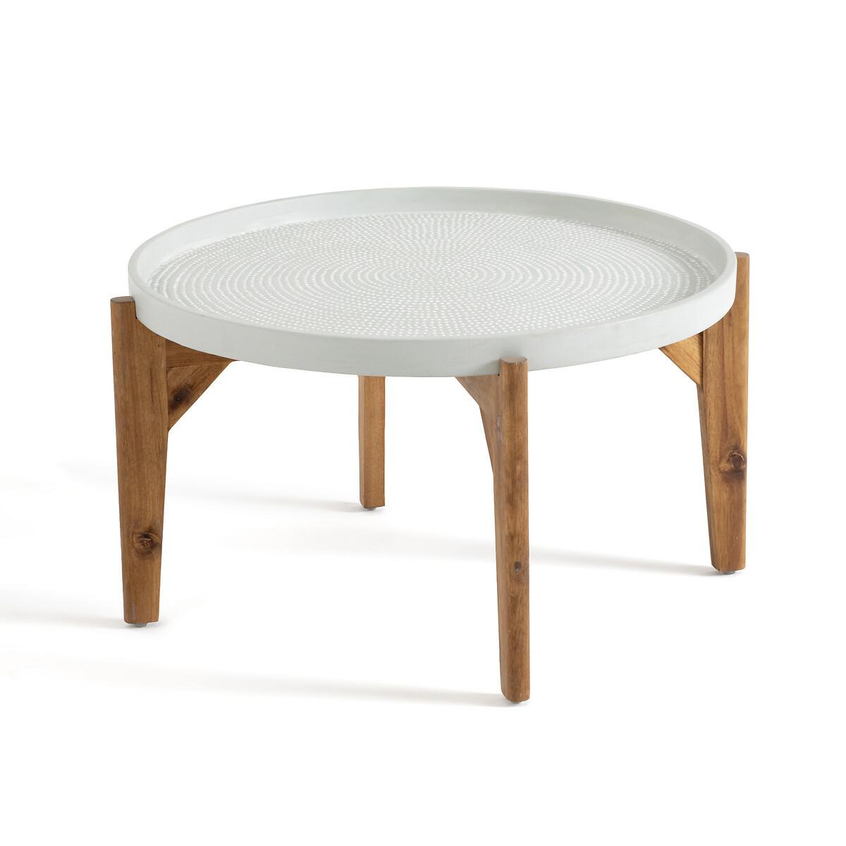 Platte aus Faserzement mit Strukturmuster, Beine aus Akazienholz. Der Loungetisch Médan bringt einen Boho-Touch in den Garten, auf die Terrasse oder den Balkon.....