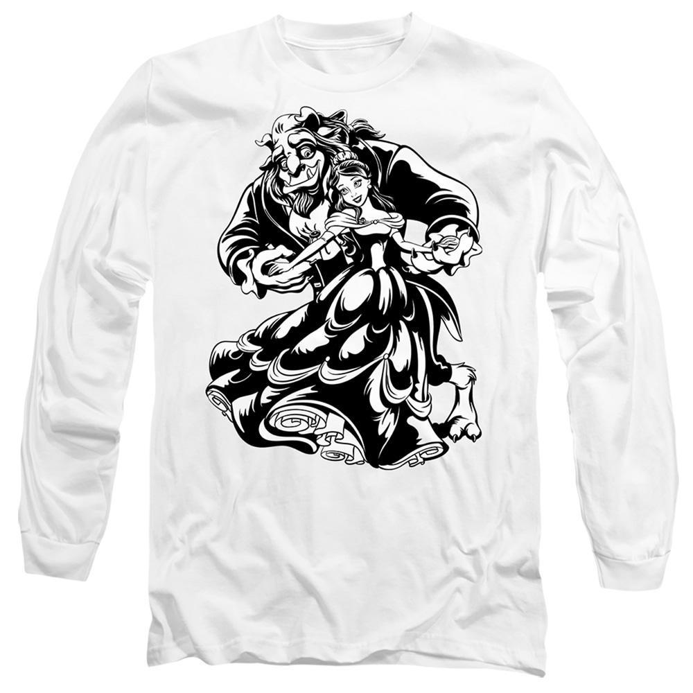 Dieses Langarm-T-Shirt zeigt einen fesselnden Grafikdruck von Beauty and the Beast beim Tanzen, dargestellt in einem klassischen Schwarz-Weiss-Stil. Das Design fängt das ikonische Duo in einer anmutigen Pose ein und ist eine charmante Ergänzung für jede Freizeitgarderobe.