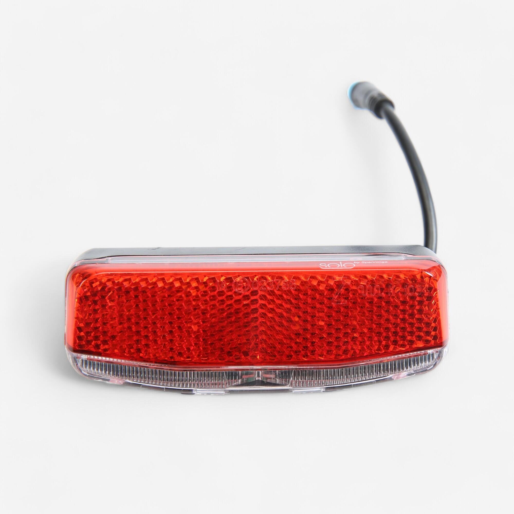 Dieses Ruecklicht mit Bremsleuchte ist ein Ersatzteil fuer das E-Lastenfahrrad Cargobike R500E Longtail. Es sorgt fuer mehr Sicherheit im Strassenverkehr durch die gut sichtbare Bremsleuchte. Die Velobeleuchtung ist fuer jede Art von Velo geeignet und wird hinten und vorne geschraubt. Das Ruecklicht verfuegt ueber reflektierende Zonen und wird mit Batterie betrieben. Zusaetzlich bietet es eine gute Koordination. Die Garantie betraegt 2 Jahre. Bitte die Kompatibilitaet und Montage durch einen Fachmann ueberpruefen lassen.