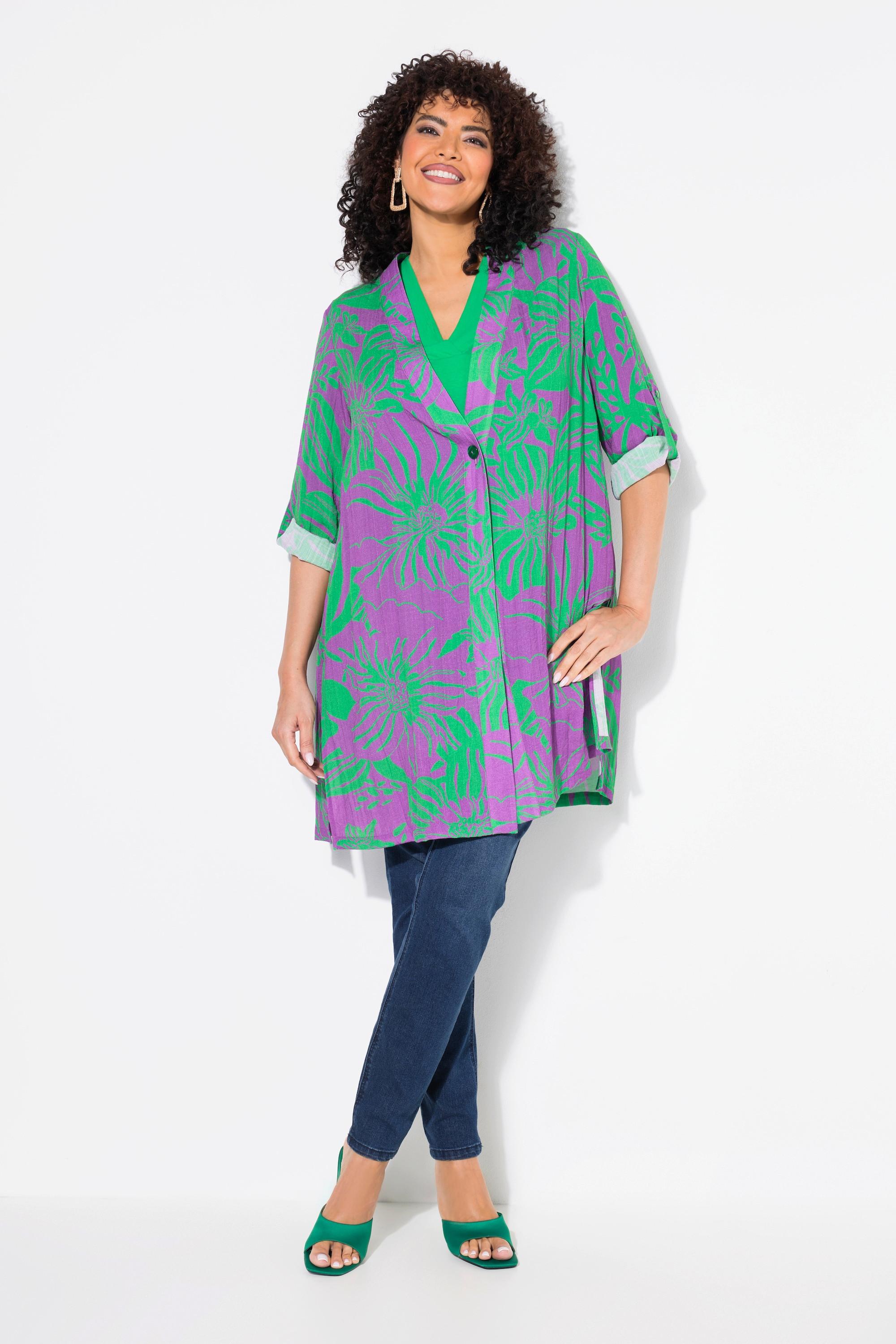 Ulla Popken Blusenjacke Blüten V-Ausschnitt Langarm