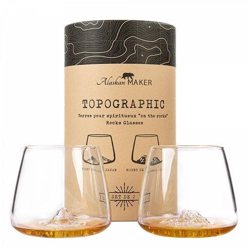 Set aus 2 Whiskeygläsern - Denali & Fuji Bergdesigns mit topografischen Reliefstrukturen Material: 100% Kristallglas Volumen: 350 ml Mundgeblasen, handgefertigte Produktion Hochwertige Qualität Wird in schöner Geschenkbox geliefert Das perfekte Geschenk für Whiskeygeniesser * 1% des Erlöses wird für die Ozeane gespendet