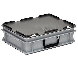 Produkttyp: Stapelbehälter, Tiefe: 300 mm, Breite: 400 mm, Nutzinhalt Gesamt: 10 l, Detailfarbe: Grau, Höhe: 132 mmTragegriff an der LängsseiteVolumen: 10 LiterAbmessungen: 400 x 300 x 132 mmDeckel mit SchnappverschlüssenStapelbar
