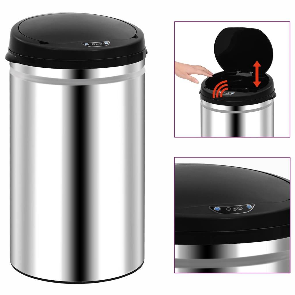 Sie müssen den Deckel nicht berühren, um Ihren Müll in diesen speziell entwickelten automatischen 40-L-Sensor-Mülleimer zu werfen. Der Deckel öffnet sich automatisch, wenn der Sensor ein Objekt in einem Bereich von 20 cm vom Mülleimer erkennt, und schließt sich automatisch, wenn der Abfall entsorgt worden ist.
