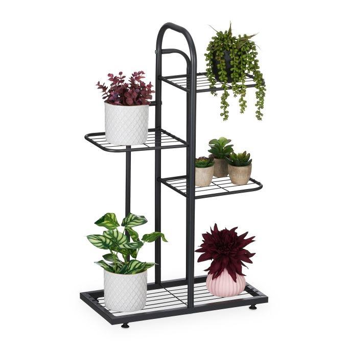 B2X Schwarzer Pflanzenständer mit 4 Regalen