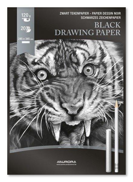 Aurora, AURORA Zeichenblock 24,5X34,5cm BL3 schwarz, 120g 20 Blatt