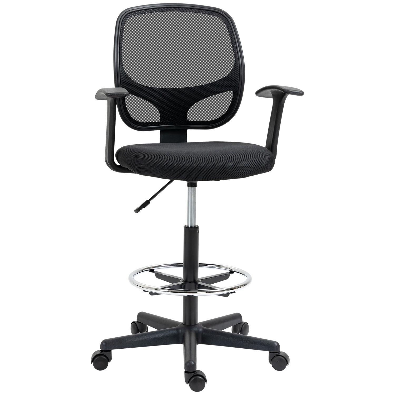 Northio, Ergonomischer Bürostuhl Schreibtischstuhl, Drehstuhl, Zeichenstuhl, Verstellbarer Fußring, Bis 120 Kg, Schwarz, 60X56X110-132 Cm