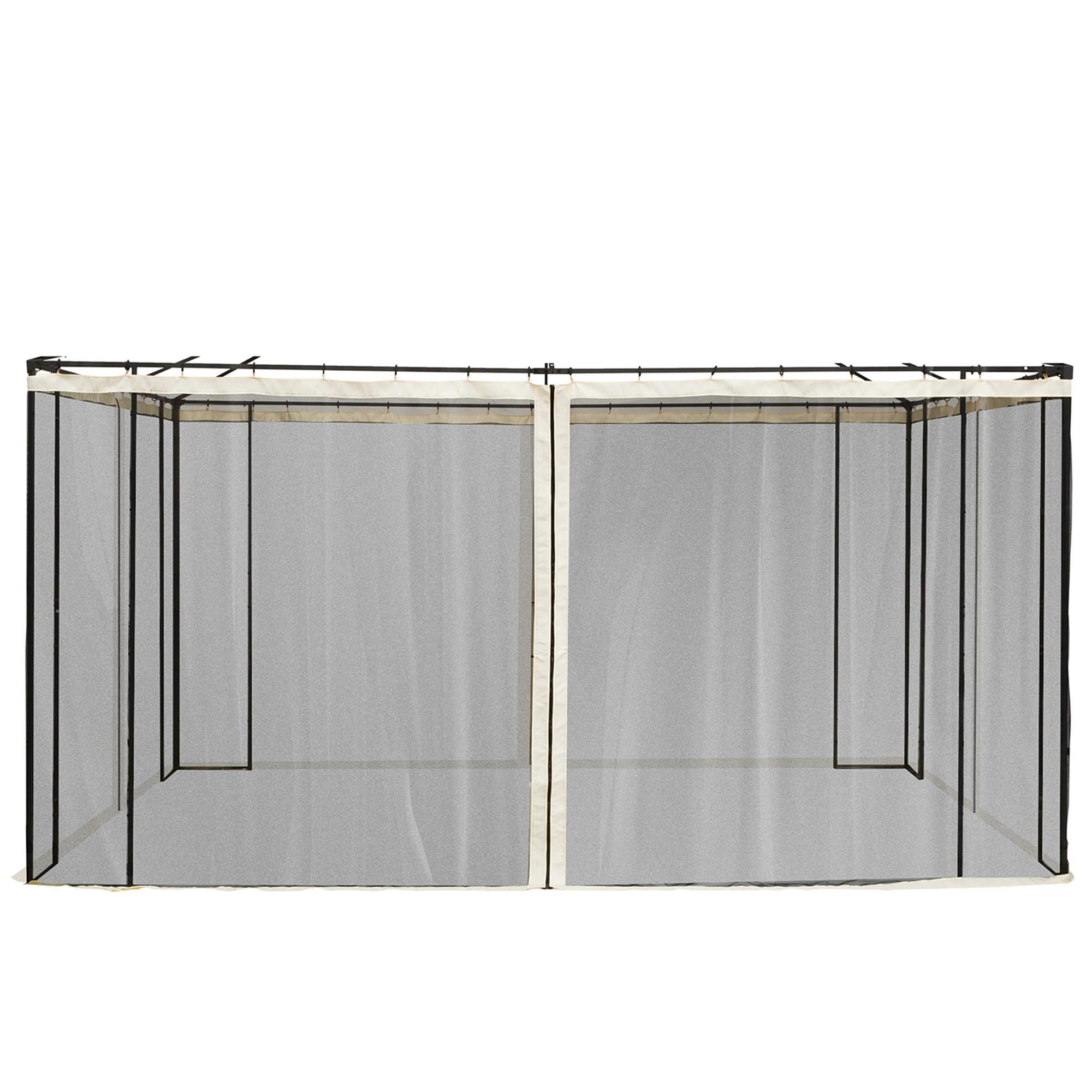 Haben Sie ein Gartenpavillon, doch die Netzvorhänge sind gerissen oder beschädigt? Gute Nachrichten! Outsunny bietet Ersatznetze für Pavillons, die zu den meisten 3 x 4 m Modellen passen. Unser Pavillonnetz aus wetterfestem Polyesterstoff hält Ihren Außenbereich frei von Insekten, Laub und Schmutz. Mit vier Netzpaneelen und Ringen zum Aufhängen ist dieses Fliegennetz so einfach anzubringen wie ein Duschvorhang - so steht Ihrem Erholungs-Hotspot nichts mehr im Wege!