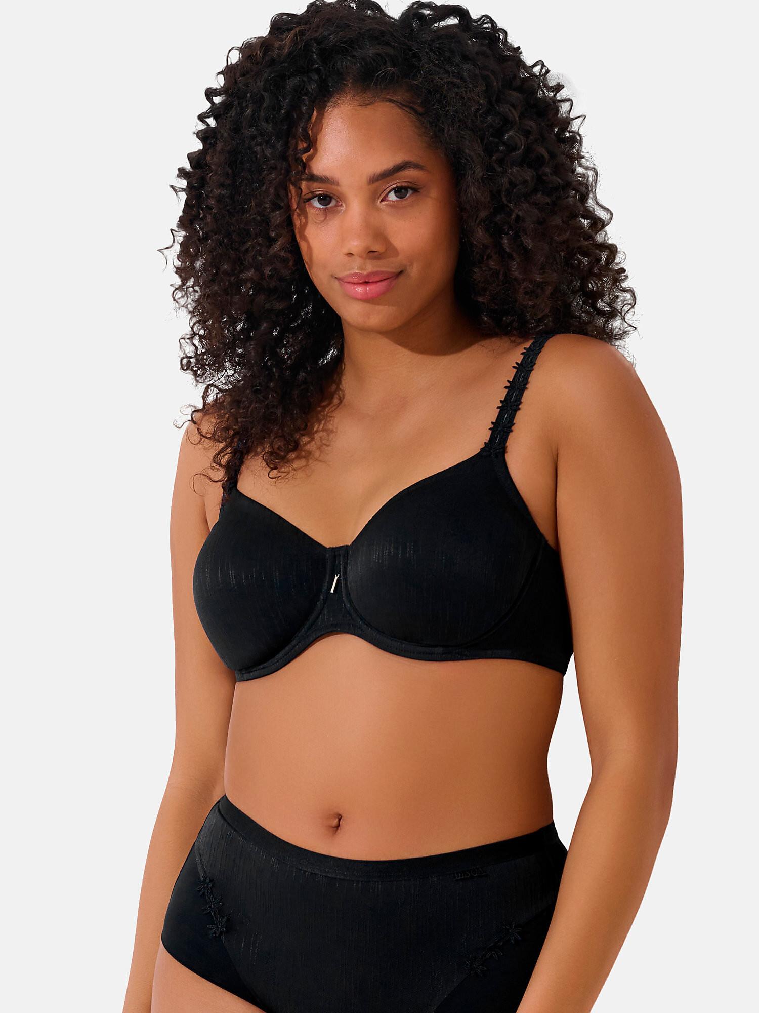 Die Körbchen sind tadellos verarbeitet, wodurch dieser BH perfekt unter jedem Outfit getragen werden kann. Die Innenseite der Körbchen besteht aus glatter, aber fester Strickware, die für eine bessere Form und Unterstützung sorgt. Der Rücken ist zusätzlich mit elastischem Tüll gefüttert, um eine bessere Umhüllung und einen besseren Tragekomfort in großen Größen zu gewährleisten. Ein elastisches Unterbrustband sorgt für eine perfekte Passform, und ein reichhaltigeres Design im mittleren Teil des BHs umschliesst die Brust besser. Die Träger sind für eine bequeme Passform verstellbar, und ein kleiner dekorativer Schmuck befindet sich zwischen den Cups.