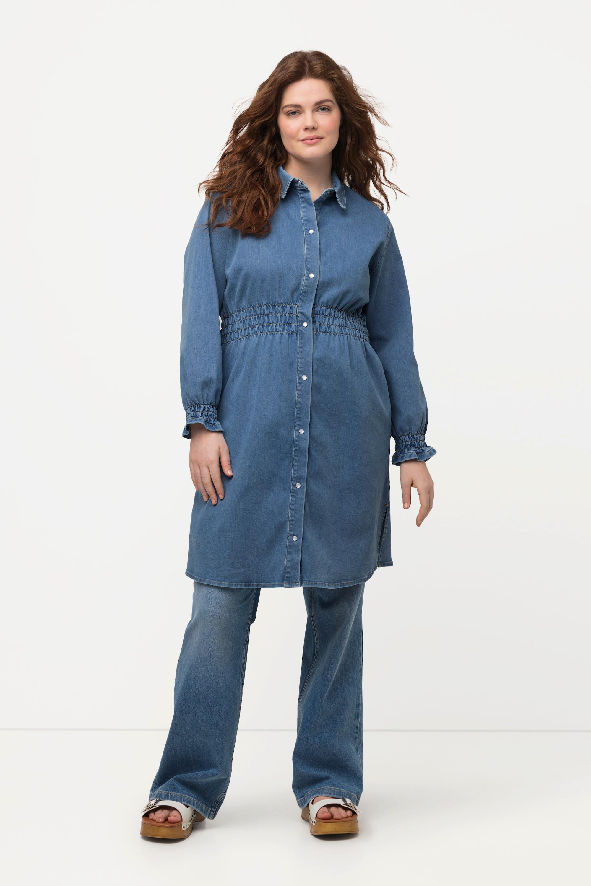Diese lange Jeansjacke verfügt über einen klassischen Hemdkragen und eine taillierte Passform, die eine schmeichelhafte Silhouette schafft. Das Design umfasst eine durchgehende Knopfleiste und lange Ärmel mit elastischen Bündchen, die einen Hauch von Stil und Komfort verleihen. Die Jacke ist aus Bio-Baumwolle gefertigt und bietet ein weiches Gefühl sowie eine nachhaltige Wahl.
