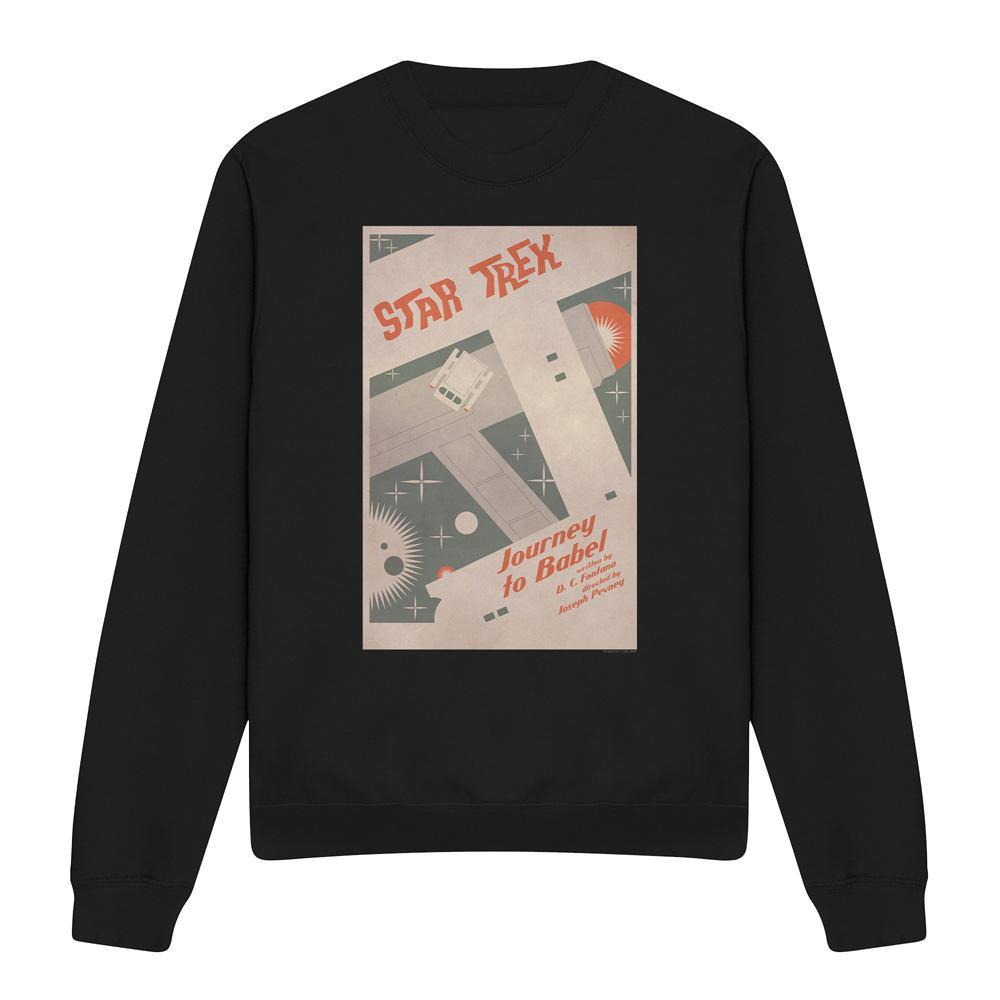 Dieses Sweatshirt zeigt einen Grafikdruck, der von Star Trek: The Original Series, genauer Episode 39, "Reise nach Babel", inspiriert ist. Das Design fängt die Retro-Ästhetik der klassischen Science-Fiction-Show ein und macht es zu einem unverwechselbaren Stück für Fans.