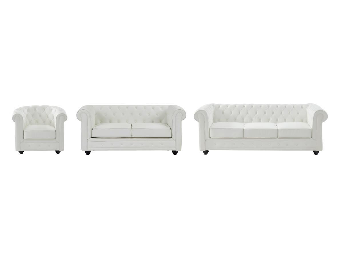 Vente-unique, Sofas 3-Sitzer, 2-Sitzer & Sessel - Kunstleder - Weiß - CHESTERFIELD