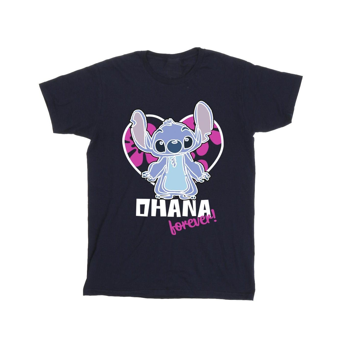 Dieses T-Shirt zeigt einen charmanten Grafikdruck von Stitch aus Disneys Lilo & Stitch, vor einem herzförmigen Blumenhintergrund. Der Satz "OHANA forever!" ist prominent unter der Figur platziert und feiert das Thema Familie und Zusammenhalt. Dieses bequeme T-Shirt ist für den Alltag geeignet.